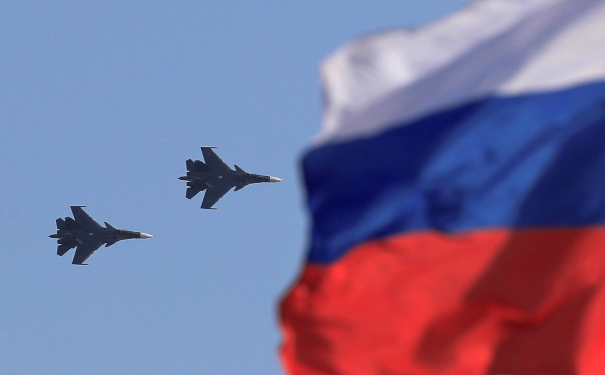 Στιγμή της προσγείωσης ενός Su-57 με αλεξίπτωτο.
