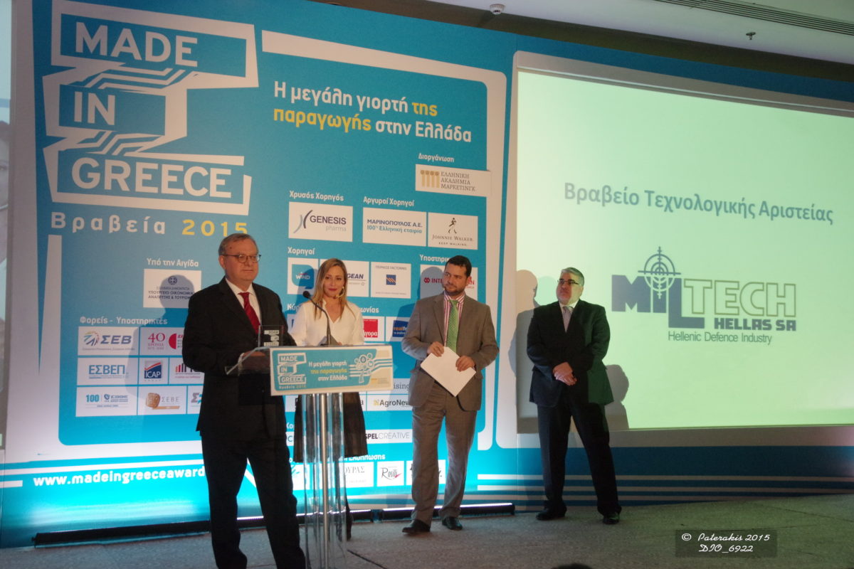 Η Miltech Hellas απέσπασε το Πρώτο Βραβείο Τεχνολογικής Αριστείας για τα νέα προϊόντα Θερμικής Απεικόνισης που έχει αναπτύξει την τελευταία πενταετία και εξάγονται στο διεθνή χώρο με μεγάλη επιτυχία.