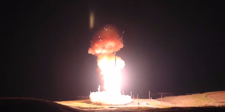 Η Πολεμική Αεροπορία των ΗΠΑ (USAF) πραγματοποίησε χθες Τετάρτη (19.02.2025) επιτυχημένη εκτόξευση ενός διηπειρωτικού βαλλιστικού πυραύλου τύπου Minuteman III, στο πλαίσιο προγραμματισμένης δοκιμής για να επιβεβαιωθεί η επιχειρησιακή λειτουργία και αποτελεσματικότητα των αμερικανικών στρατηγικών πυραυλικών δυνάμεων.