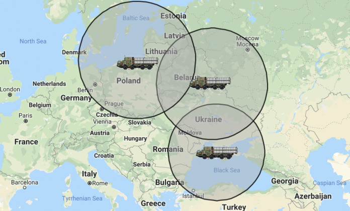 Για παράδειγμα, ένα αεροσκάφος E-3 Sentry, το οποίο θα πετά πάνω από το Βερολίνο ή λίγο βόρεια της Πράγας, θα βρίσκεται πολύ κοντά στην ακτίνα των S-500 από το Καλίνινγκραντ. Θα καλυφθεί ολόκληρη η Πολωνία, συμπεριλαμβανομένων και των νέων αμερικανικών στρατιωτικών βάσεων που δημιουργούνται στη χώρα, καθώς και ολόκληρη η ανατολική ακτή της Μαύρης Θάλασσας, συμπεριλαμβανομένου του Βουκουρεστίου και της Κωνσταντινούπολης.