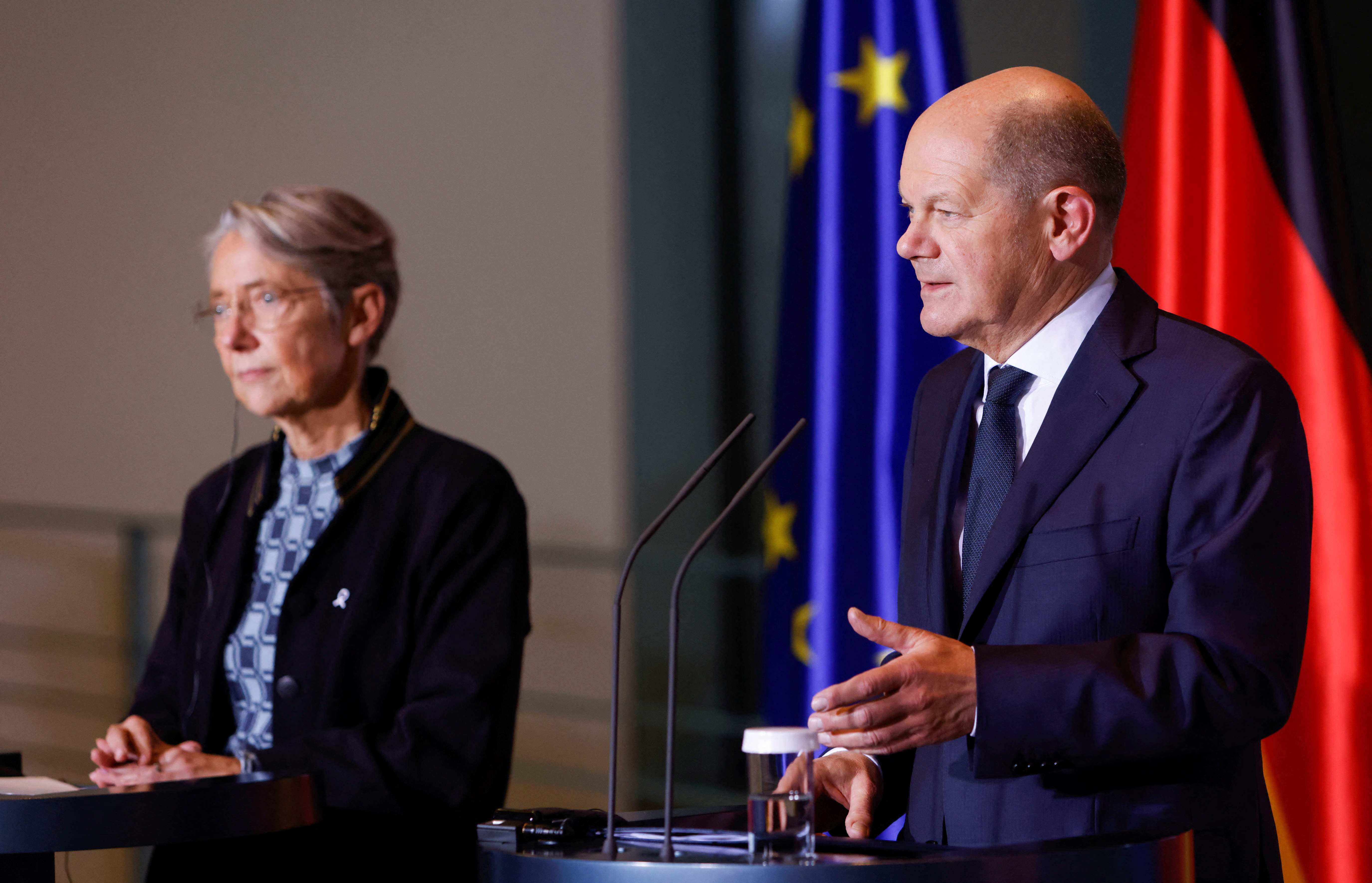 «Οι εταιρείες που εμπλέκονται στην από κοινού ανάπτυξη του ευρωπαϊκού μαχητικού αεροσκάφους επόμενης γενιάς με το όνομα FCAS έχουν συμφωνήσει για το πώς να προχωρήσουν», δήλωσε σήμερα Παρασκευή η πρωθυπουργός της Γαλλίας, Ελίζαμπεθ Μπορν, σε κοινή συνέντευξη Τύπου με τον Γερμανό Καγκελάριο Όλαφ Σολτς.
