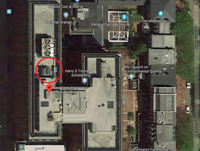 Spotted during the lockdown: a missile battery in position atop a building across the street from the White House pic.twitter.com/IkmjWby2FI