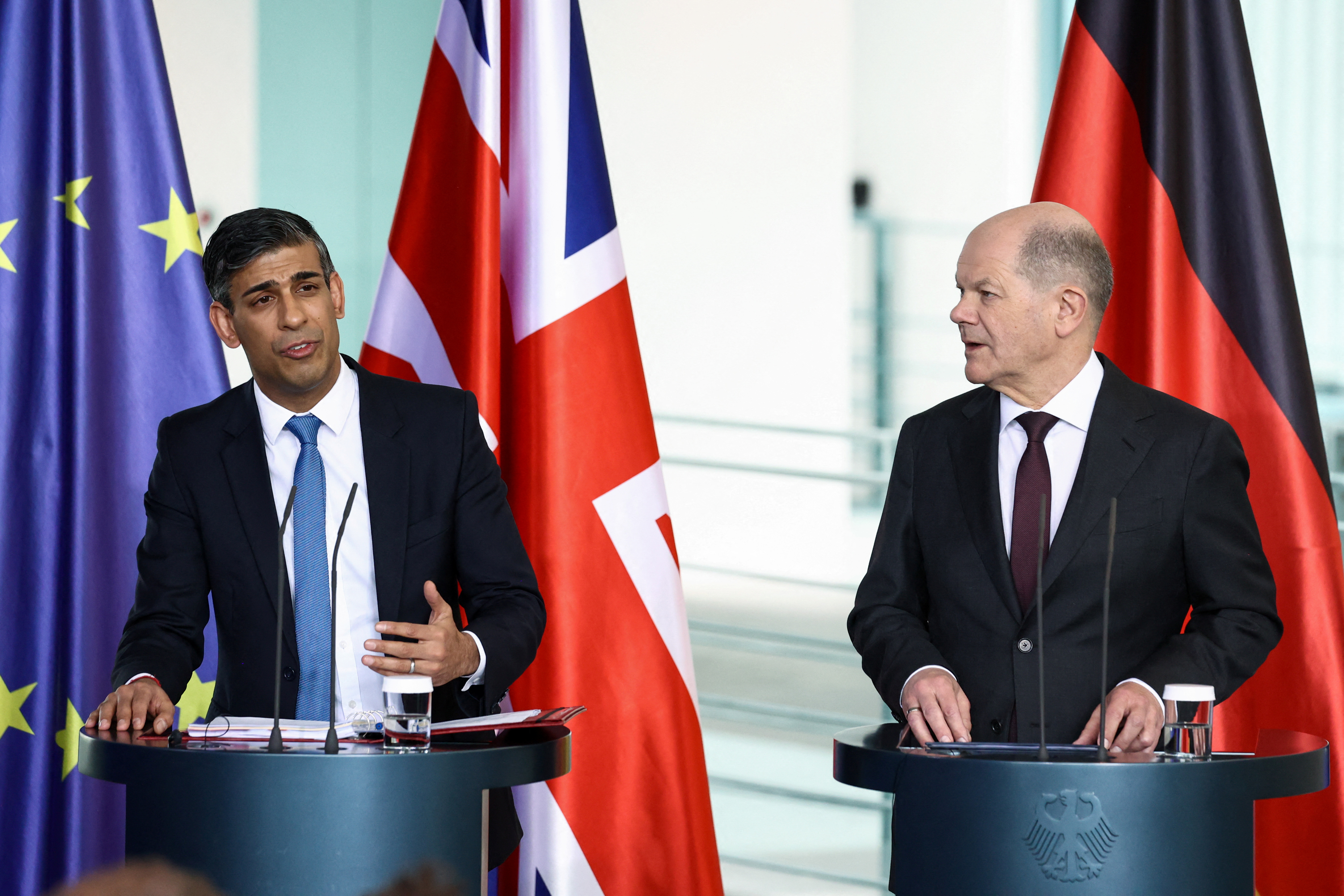 Ο Σολτς συναντήθηκε σήμερα στο Βερολίνο με τον Βρετανό πρωθυπουργό Ρίσι Σούνακ. Κατά την διάρκεια των κοινών δηλώσεων των δύο ηγετών, ο Γερμανός καγκελάριος ρωτήθηκε για το αν θα στείλει τους «πολυπόθητους» πυραύλους Taurus στο Κίεβο.