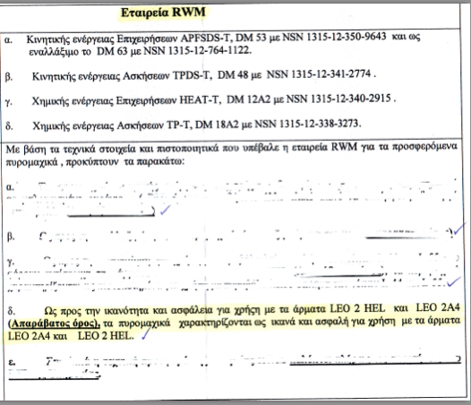 Συνεπώς η ηγεσία της ΓΔΑΕΕ προκειμένου να προβεί σε ορθές και τεκμηριωμένες κατά νόμο εισηγήσεις θα πρέπει να λαμβάνει γνώση όλων των στοιχείων και δεδομένων τα οποία πρέπει να της παρουσιάζονται με αντικειμενικότητα. Δεν γνωρίζουμε εάν είχαν ή έχουν περιέλθει σε γνώση της πολιτικής ηγεσίας της ΓΔΑΕΕ οι εσωτερικές αξιολογήσεις οι οποίες διενεργήθηκαν από την ΓΔΑΕΕ για τα πυρομαχικά των ΑΤΚ, ΙΜΙ και RWM. Σε αυτές τις αξιολογήσεις φαίνεται χαρακτηριστικά ότι τα πυρομαχικά των ΑΤΚ και ΙΜΙ που αναφέρονται παραπάνω «χαρακτηρίζονται ως ικανά και ασφαλή για χρήση μόνο για το άρμα LEO2A4» κάτι το οποίο εμμέσως αναφερόταν στην από 18 Μαΐου 2011 επιστολή που έλαβε ο τότε ΥΕΘΑ κ. Βενιζέλος από τον Ισραηλινό ομόλογό του.