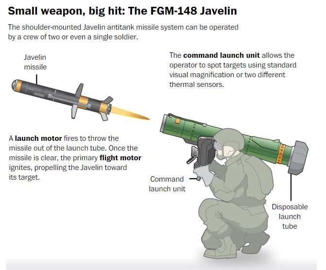 Στο σημείο αυτό, ο Μαρκ Χέιγουορντ δήλωσε στην Washington Post ότι «φαίνεται πως τα βλήματα τύπου Javelin που στάλθηκαν στην Ουκρανία δεν είχαν ούτε εγχειρίδια χρήσης ούτε κάρτες επικοινωνίας ώστε να καλέσουν χωρίς χρέωση μια διεύθυνση του Πενταγώνου που θα μπορεί να τους κατευθύνει στην επίλυση λειτουργικών προβλημάτων των πυραυλικών συστημάτων όταν αυτά προκύπτουν», ενώ τόνισε ότι αρκετοί Ουκρανοί και εκπαιδευτές δεν γνώριζαν καμία γραμμή υποστήριξης για τα Javelin»