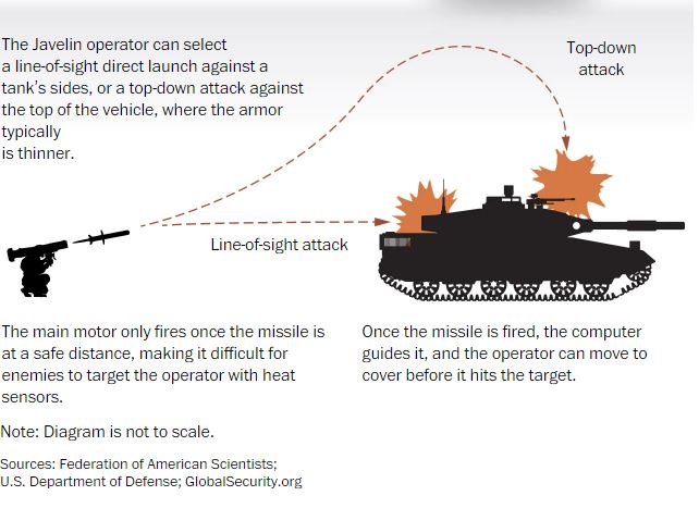 Με το κατευθυνόμενο αντιαρματικό βλήμα τύπου Javelin, ο στρατιώτης «κλειδώνει» την θερμική εικόνα του εχθρικού στόχου στον πίνακα στόχευσης (commanda launch unit) και στη συνέχεια εκτοξεύεται το βλήμα το οποίο έχει την ικανότητα να διεισδύσει θωράκιση από απόσταση έως και 2,5 μιλίων. Ωστόσο, το Javelin διαφοροποιείται από άλλα φορητά πυραυλικά συστήματα (MANPADS), λόγω των ιδιαίτερων κατασκευαστικών και λειτουργικών του χαρακτηριστικών, ενώ μάλιστα «έρχεται πακέτο» με ένα εγχειρίδιο χρήσης 258 σελίδων.
