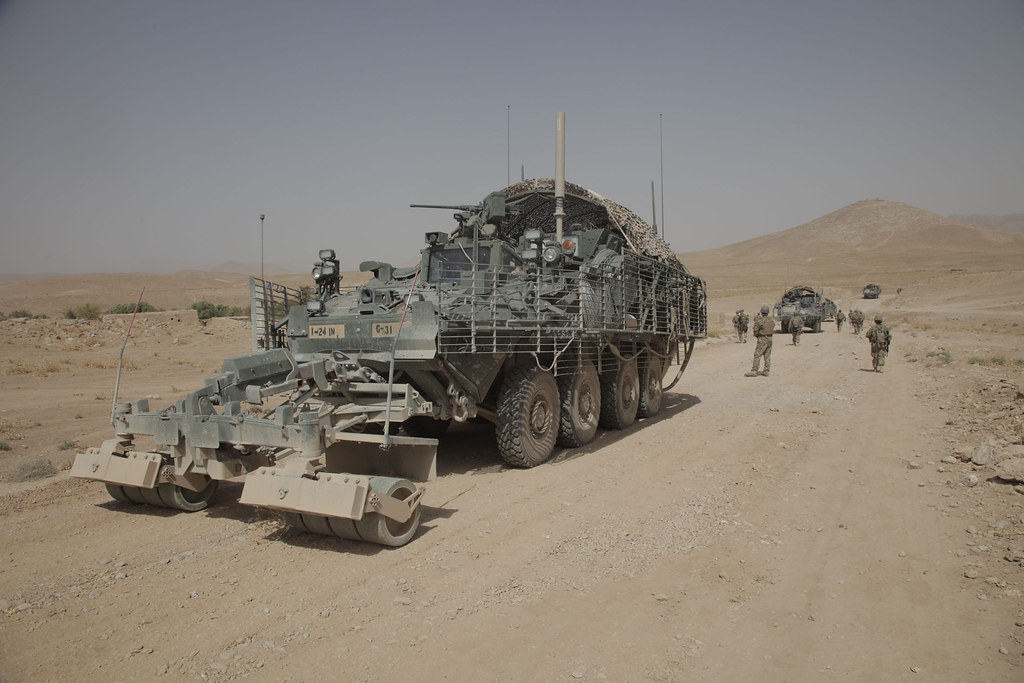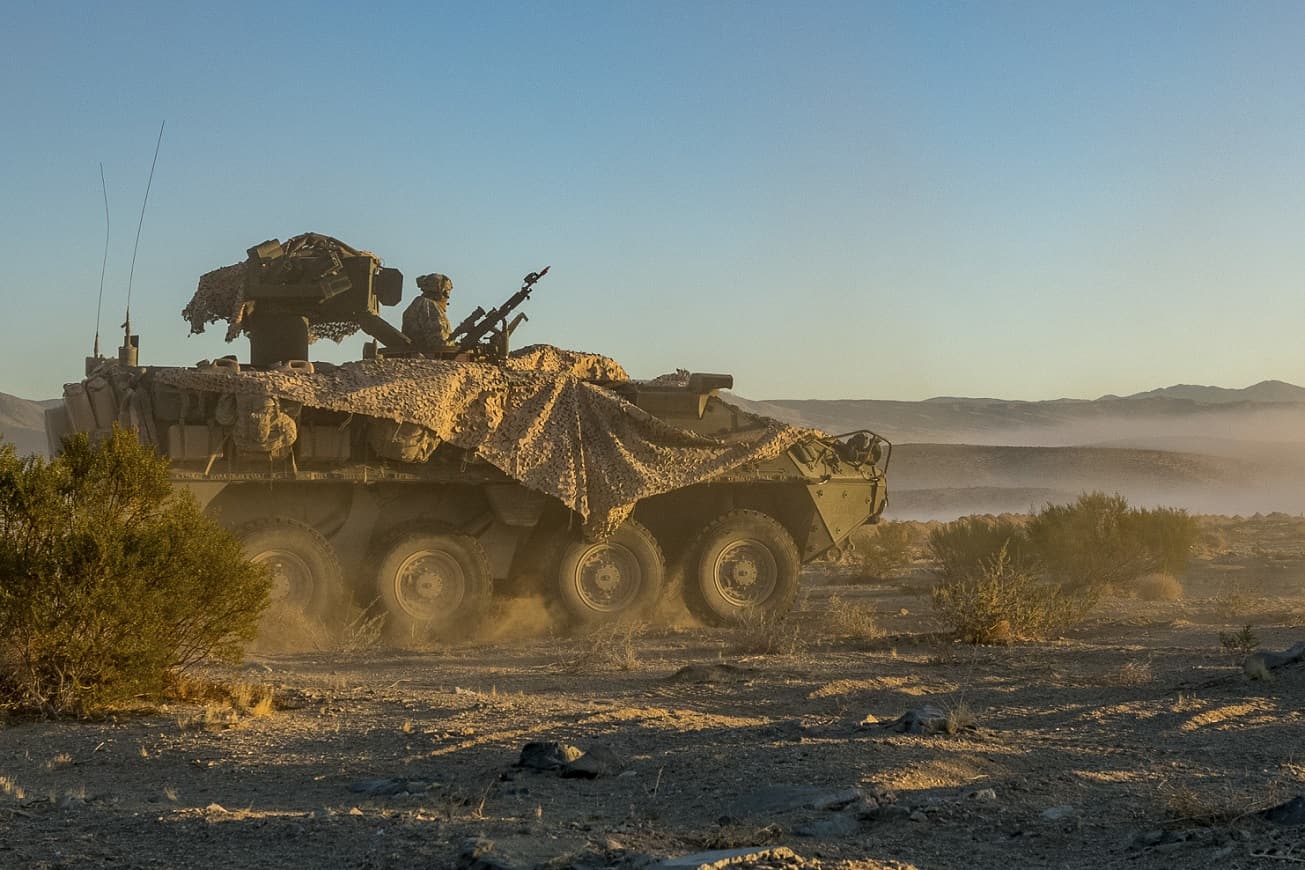 Ο αμερικανικός στρατός διεξήγαγε εκπαίδευση με βαριά οπλισμένες παραλλαγές του τροχοφόρου τεθωρακισμένου οχήματος Stryker στην έρημο της Καλιφόρνια.