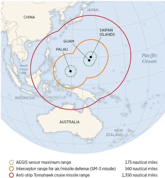 Πέρσι, προέκυψαν κάποιες προτάσεις για την κατασκευή εγκαταστάσεων αντιπυραυλικής άμυνας Aegis Ashore στο Γκουάμ, όπως περίπου λειτουργεί επί του παρόντος στη Ρουμανία, καθώς αυξάνονται οι ανησυχίες για αεροπορικές και πυραυλικές επιθέσεις, που θα μπορούσε να πραγματοποιήσει η Κίνα, σε ενδεχόμενη σύγκρουση.