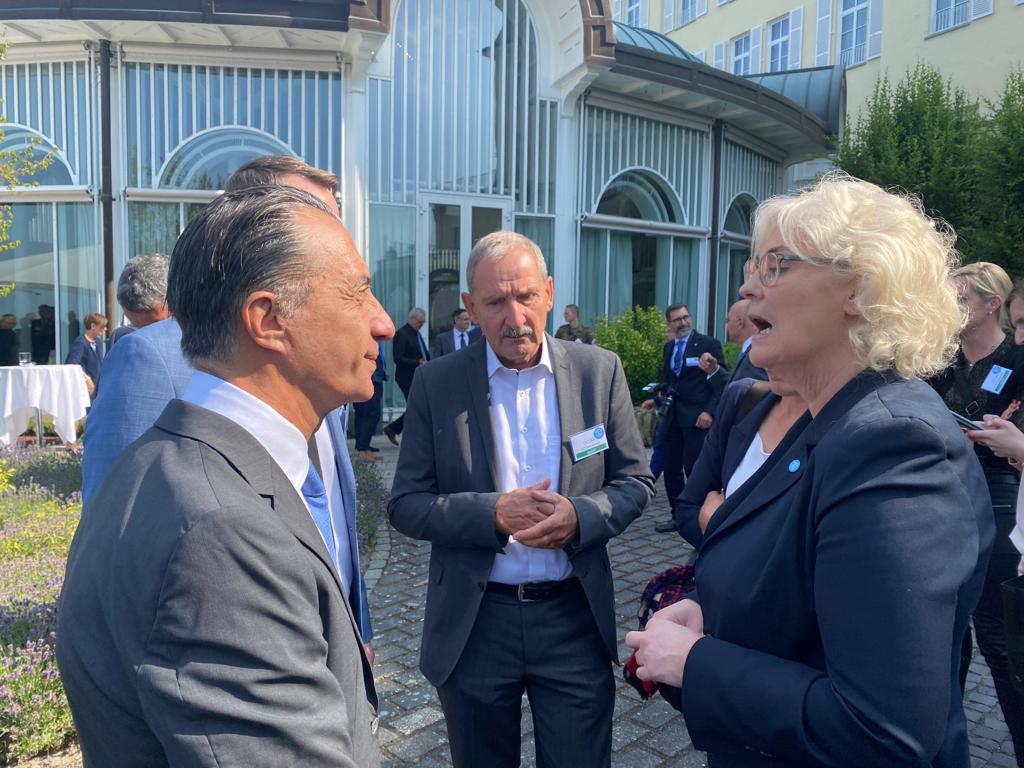 «Θέλουμε ο OCCAR να γίνει η ανεξάρτητη αρχή όλων των ευρωπαϊκών προμηθειών για την άμυνα στην ΕΕ» δήλωσε η Christine Lambrecht, Ομοσπονδιακή Υπουργός Άμυνας της Γερμανίας Christine Lambrecht (δεξιά), στον Κρίστιαν Χατζημηνά CEO THEON SENSORS (αριστερά) και τον Andreas Hülle, CEO της HENSOLDT Optronics GmbH (μέσο).