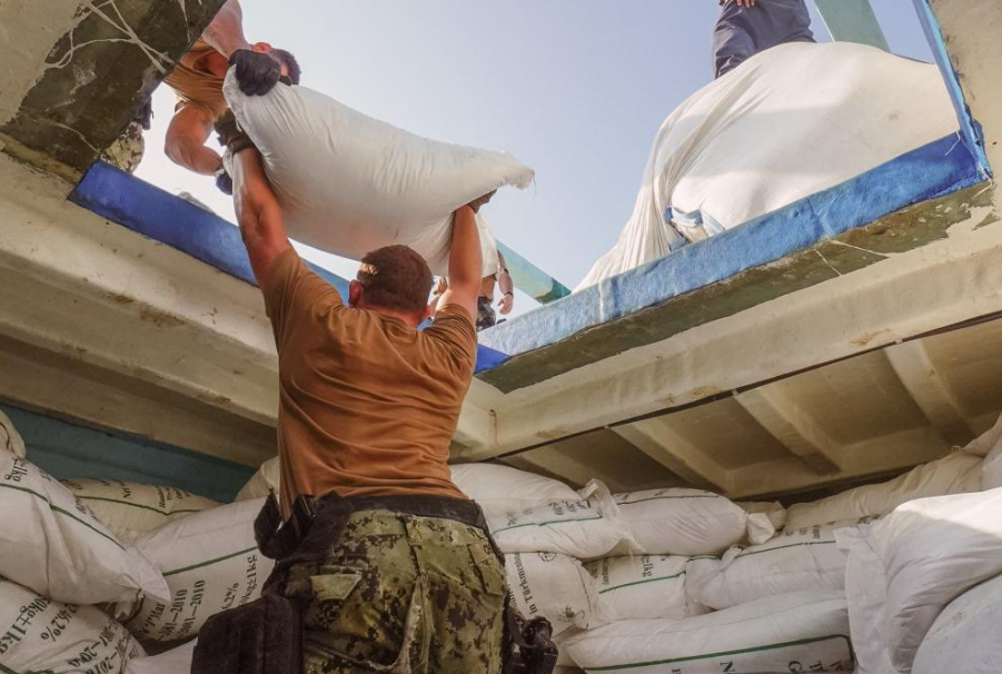 On Nov. 8, U.S. 5th Fleet intercepted a fishing vessel in the Gulf of Oman smuggling lethal aid, including a large quantity of explosive material, from Iran to Yemen. [1/3]
