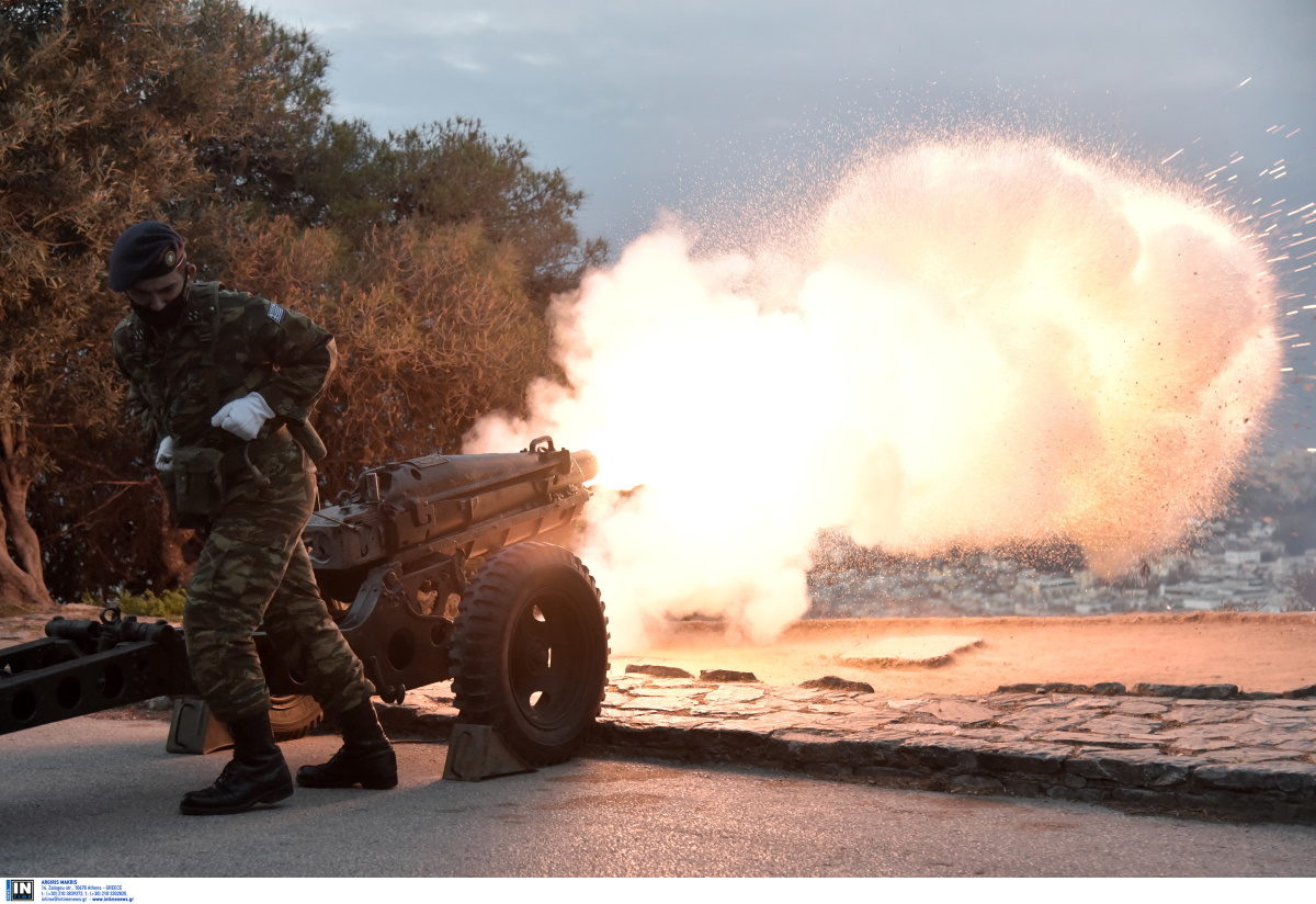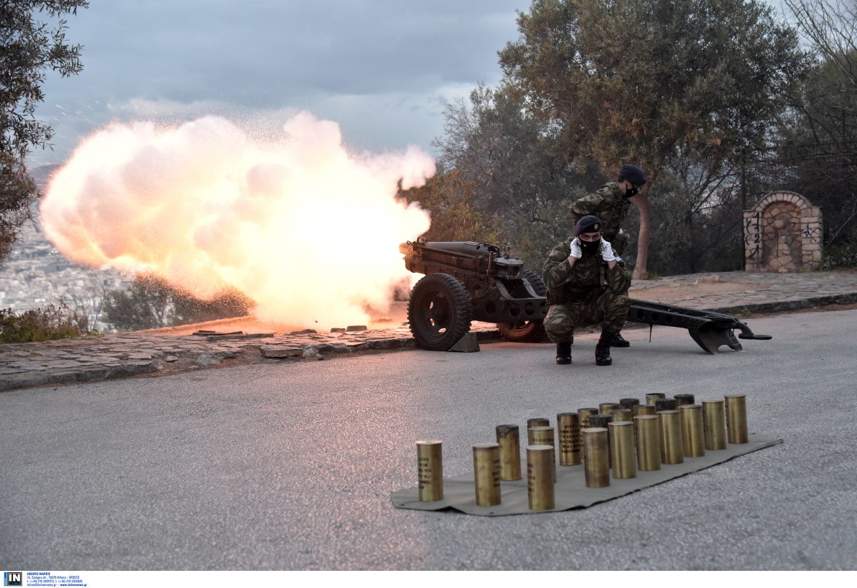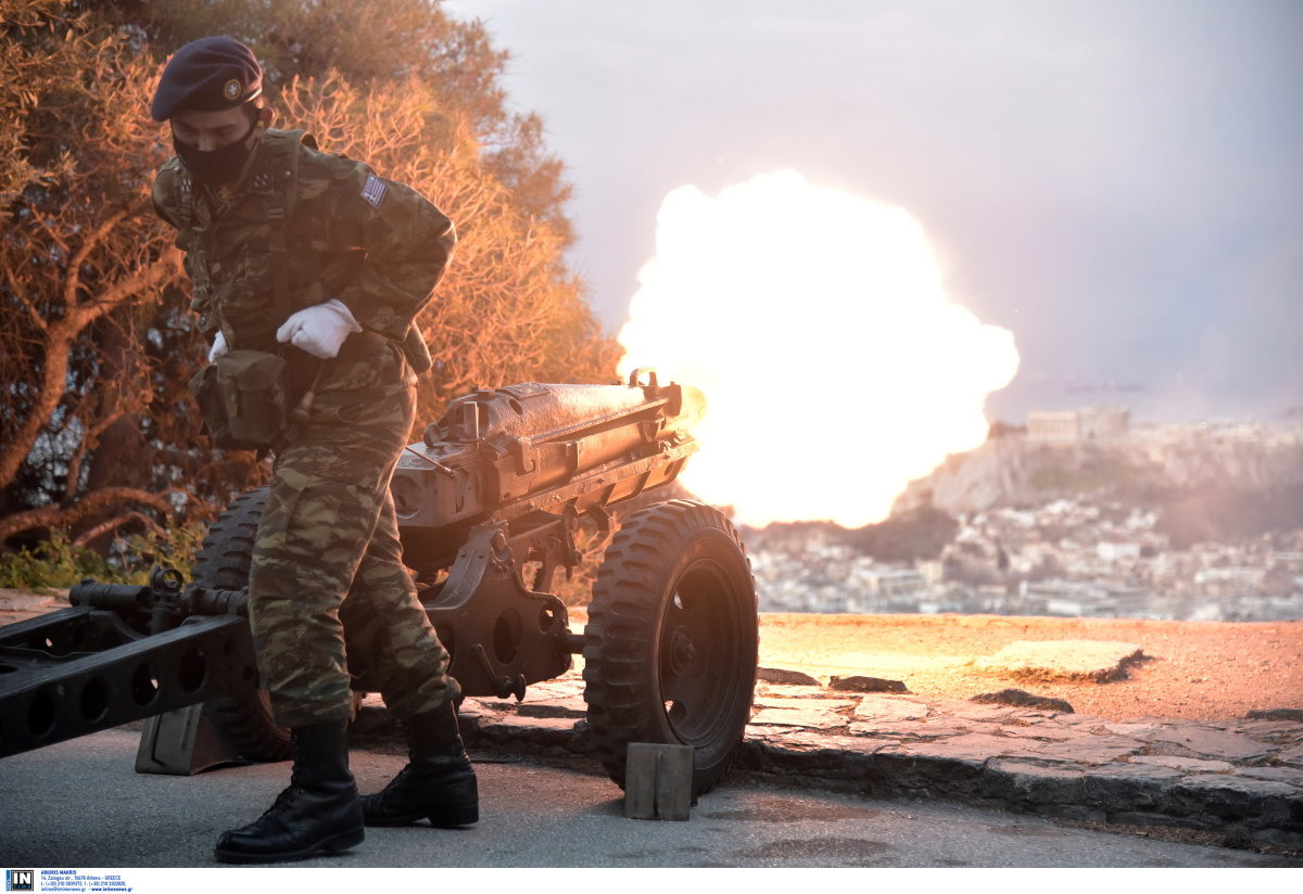 Γύρω στις 06:20 ξεκίνησαν οι εορτασμοί για τα 200 χρόνια της Ελληνικής Επανάστασης του 1821, με τους 21 χαιρετιστήριους κανονιοβολισμούς από τον Λυκαβηττό.