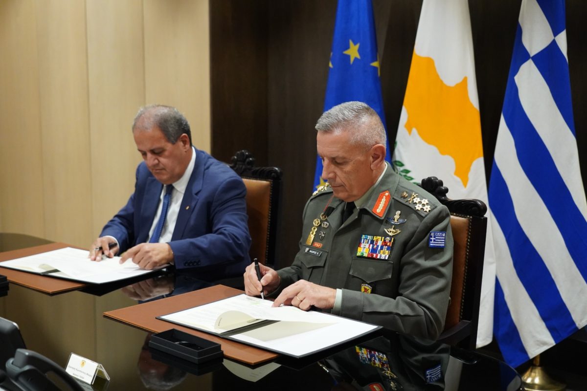Ο Α/ΓΕΕΘΑ Στρατηγός Κωνσταντίνος Φλώρος και ο Γενικός Διευθυντής του Υπουργείου Άμυνας της Κυπριακής Δημοκρατίας κ. Ανδρέας Π. Λουκά, υπέγραψαν στην Αίθουσα Συνεδριάσεων «ΣΤΡΑΤΑΡΧΟΥ ΑΛ. ΠΑΠΑΓΟΥ» στο ΓΕΕΘΑ, την Εφαρμοστική Διευθέτηση μεταξύ του Υπουργείου Εθνικής Άμυνας της Ελληνικής Δημοκρατίας και του Υπουργείου Άμυνας της Κυπριακής Δημοκρατίας.