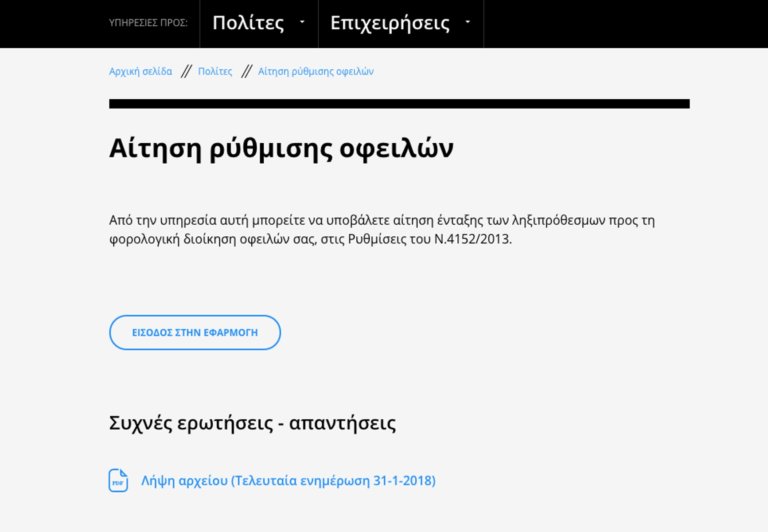 Άνοιξε πριν λίγο η ηλεκτρονική εφαρμογή για τη ρύθμιση σε έως 120 δόσεις των ληξιπρόθεσμων οφειλών των φορολογούμενων και των επιχειρήσεων προς την εφορία.