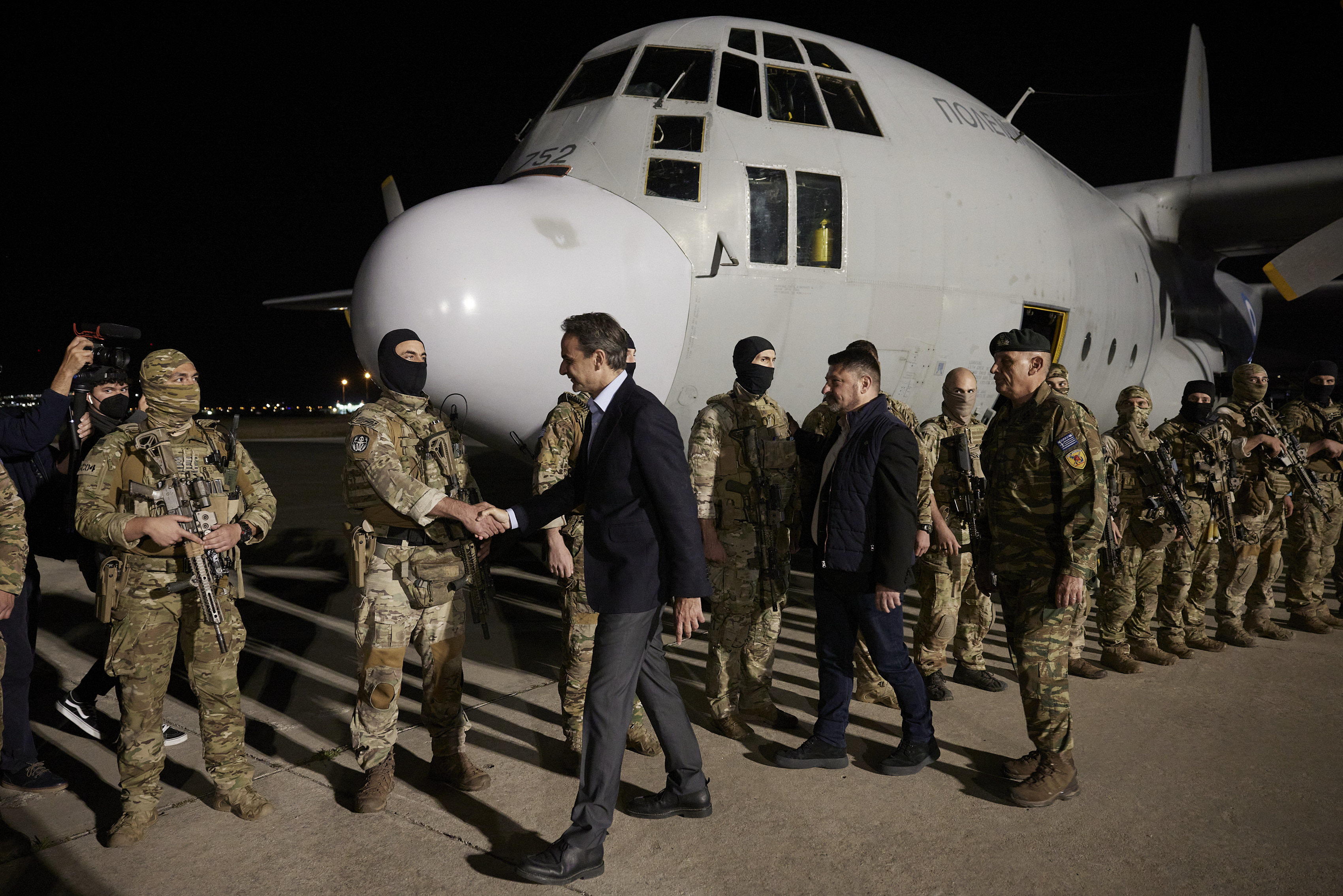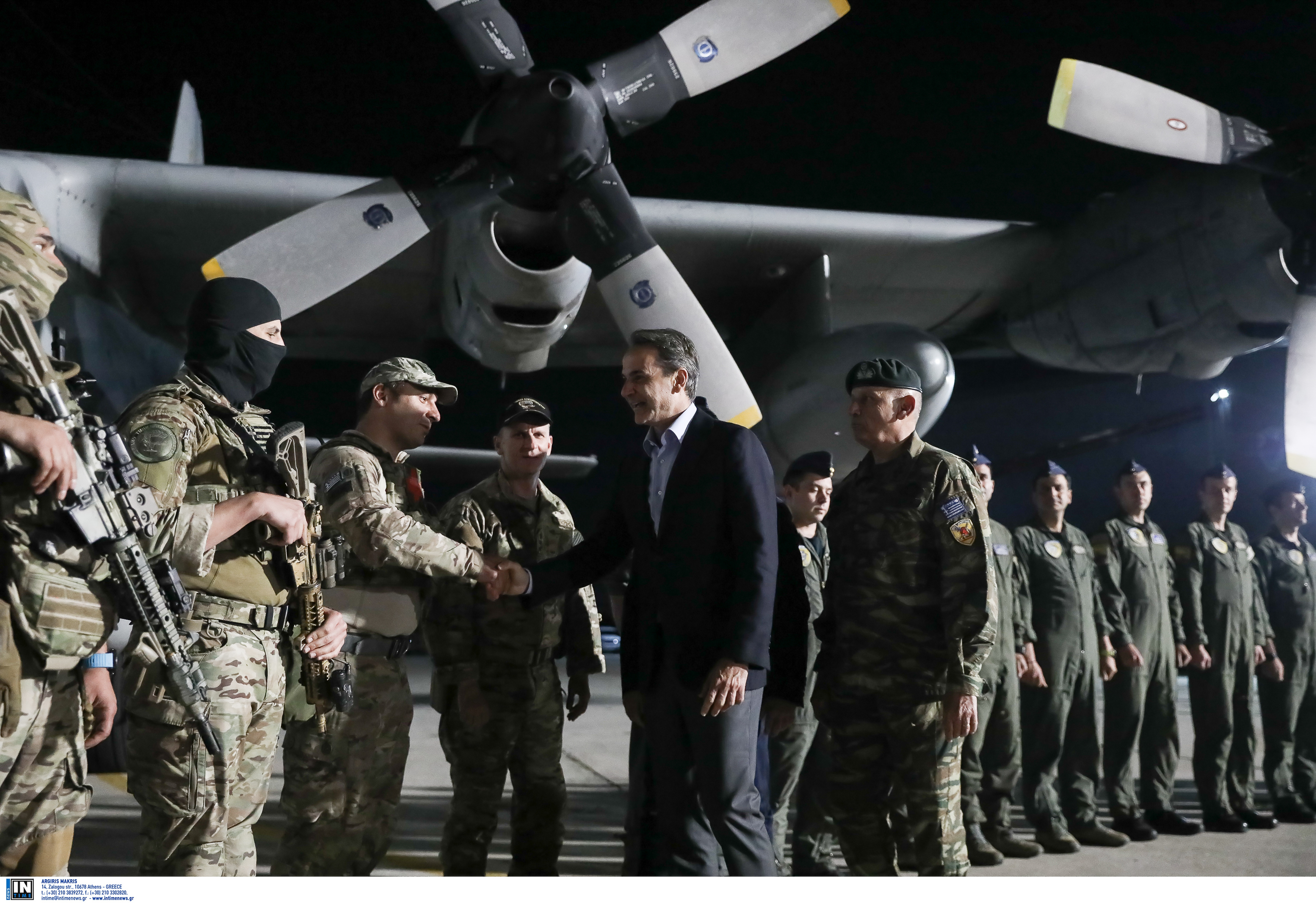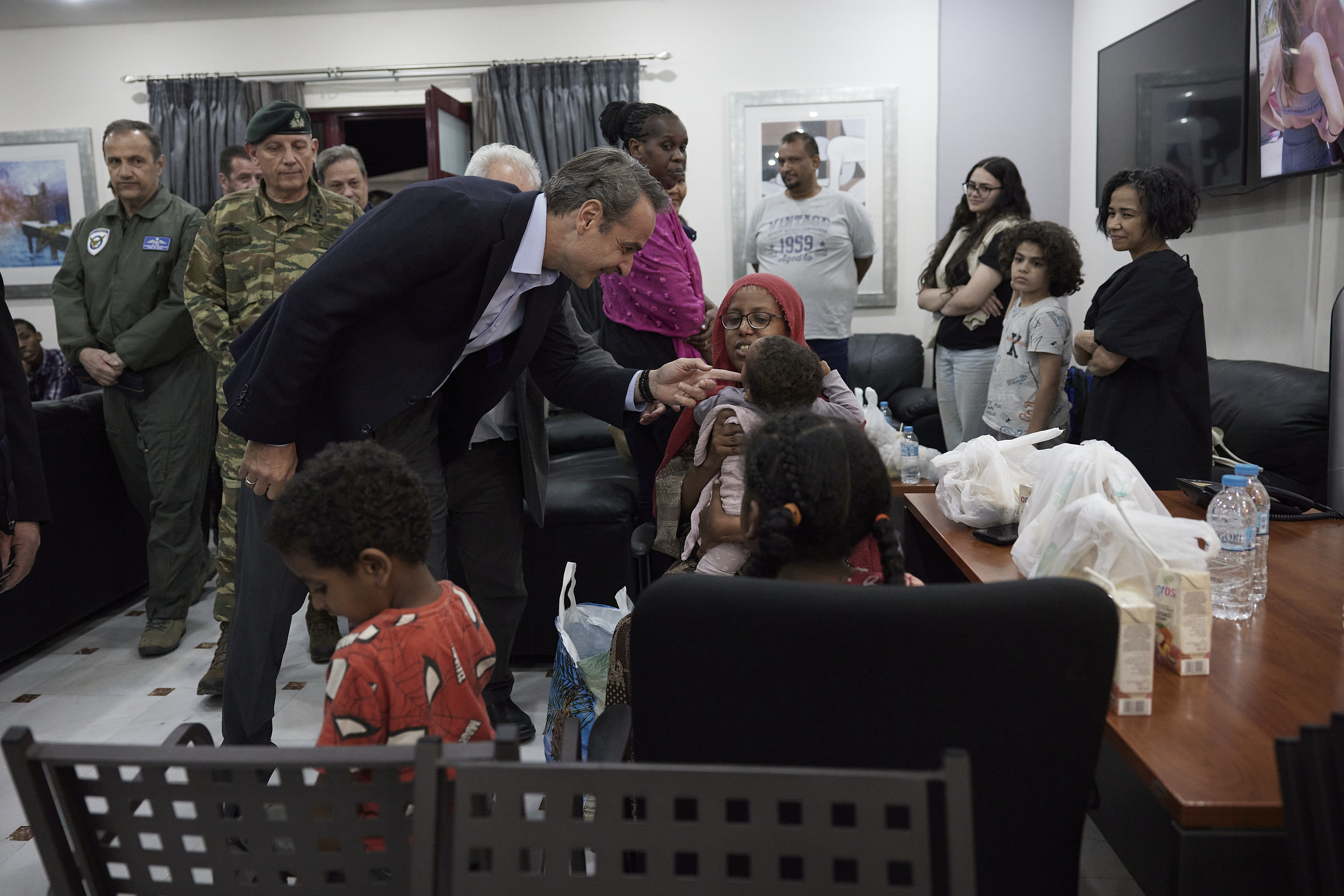 Παρών ήταν και ο Κυριάκος Μητσοτάκης, ο οποίος καλωσόρισε τους απεγκλωβισμένους και ευχαρίστησε τα στελέχη των Ενόπλων Δυνάμεων που ολοκλήρωσαν με επιτυχία την αποστολή.