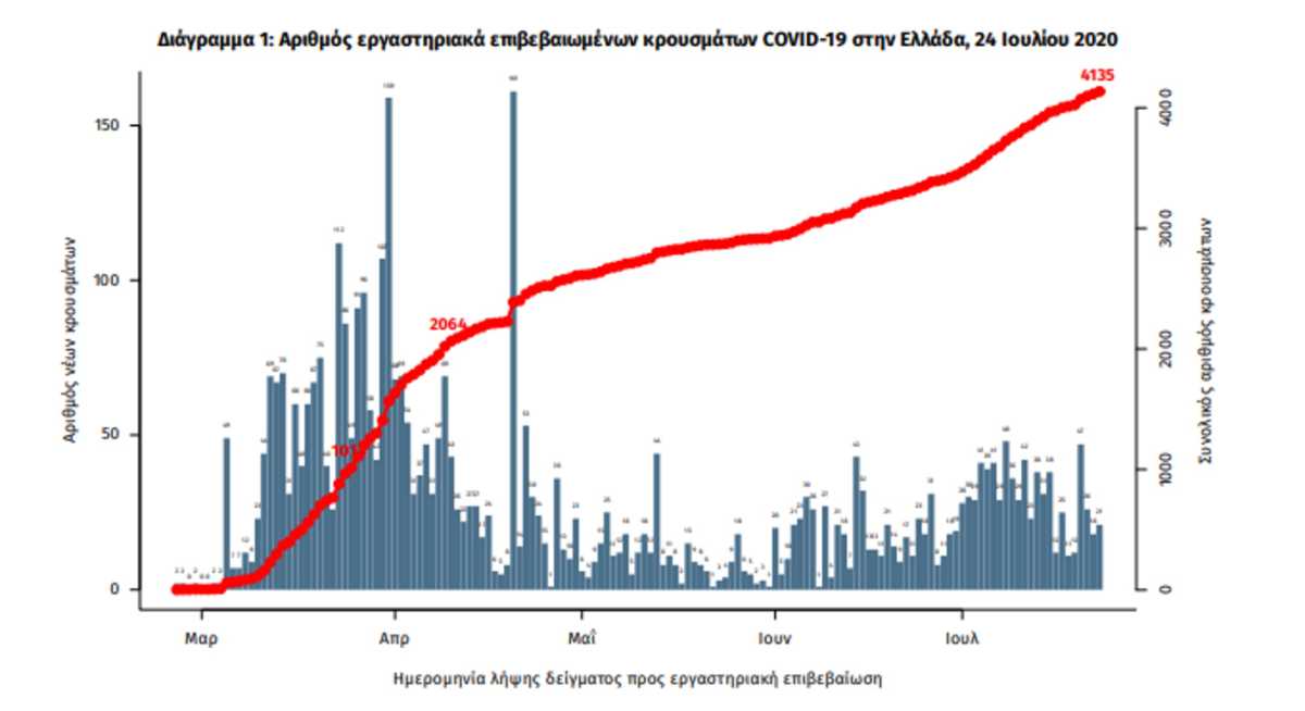 Για το πώς κινείται ο Covid-19 στην Ελλάδα ενημερώνει και σήμερα, Παρασκευή 24.07.2020, ο ΕΟΔΥ με γραπτή ανακοίνωση.