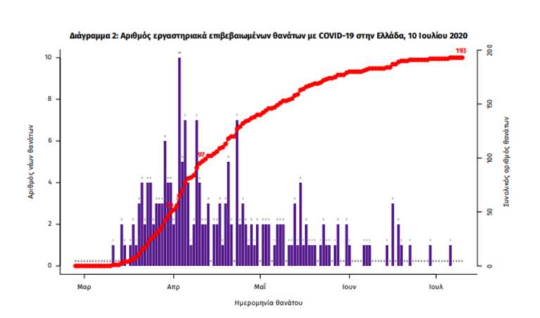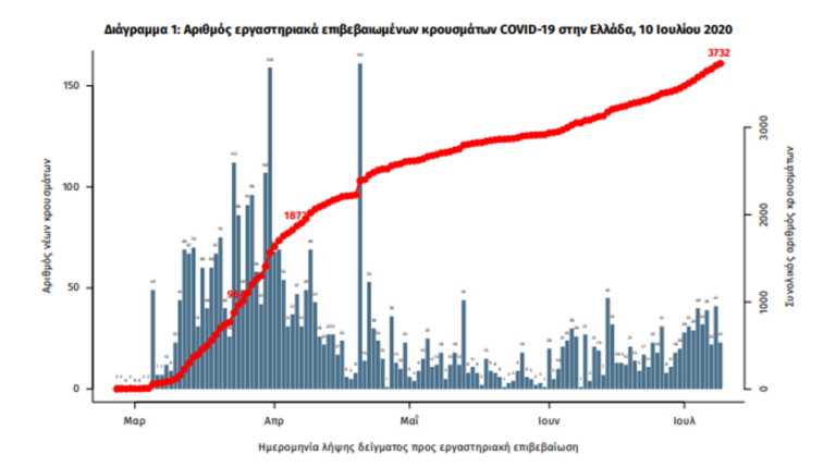 Τα νέα εργαστηριακά επιβεβαιωμένα κρούσματα της νόσου είναι 60, εκ των οποίων τα 40 εντοπίστηκαν κατόπιν ελέγχων στις πύλες εισόδου της χώρας. Ο συνολικός αριθμός των κρουσμάτων ανέρχεται σε 3732 (ημερήσια μεταβολή +1.6%), εκ των οποίων 54.5% άνδρες. Δεν έχει καταγραφεί κανένας νέος θάνατος ασθενούς με COVID-19, ενώ από την έναρξη της επιδημίας έχουν καταγραφεί συνολικά 193 θάνατοι. Η μέση ηλικία των ασθενών που απεβίωσαν είναι 76 έτη. Ο αριθμός των ασθενών που νοσηλεύονται διασωληνωμένοι είναι 9 (66.7% άνδρες).