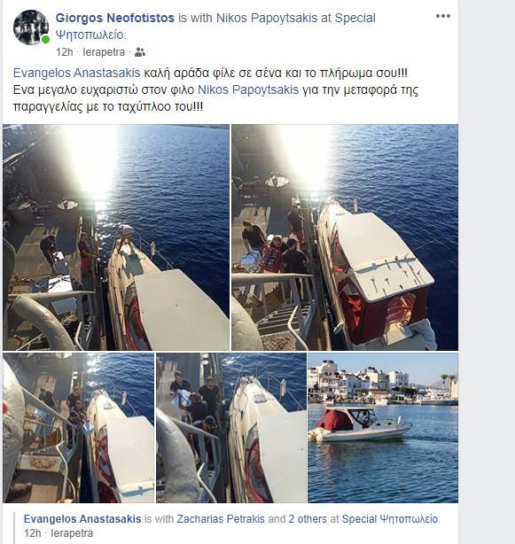 Δεν είναι άλλωστε η πρώτη φορά που η Κρητικοί δείχνουν την αγάπη τους για τις Ένοπλες Δυνάμεις. Λίγες μέρες νωρίτερα, γνωστό ψητοπωλείο της περιοχής, κέρασε φαγητό το πλήρωμα της Π/Φ ΖΕΥΣ για δύο συνεχόμενα βράδια. Το πλήρωμα του ΖΕΥΣ ευχαρίστησε τους Κρητικούς για την ευγενική χειρονομία και δημοσίευσαν και μερικές φωτογραφίες από την «επιχείρηση». Η παραγγελίες μεταφέρθηκαν με ιδιωτικό ταχύπλοο.
