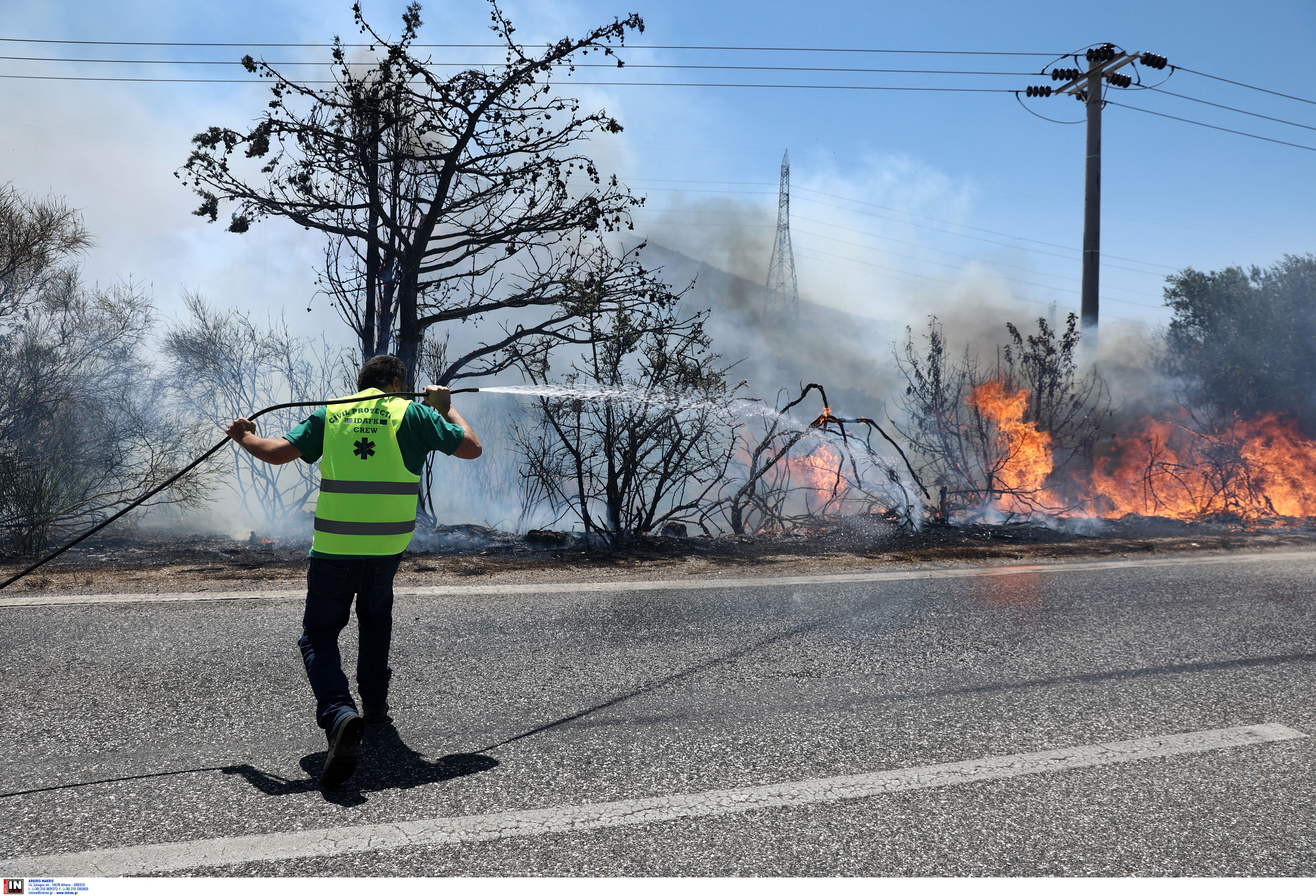 Το μέτωπο της φωτιάς είναι πολύ μεγάλο και επιχειρούν πολλά μέσα της πυροσβεστικής, παρ’όλα αυτά οι άνεμοι είναι δυνατοί και δυσκολεύουν το έργο τους.