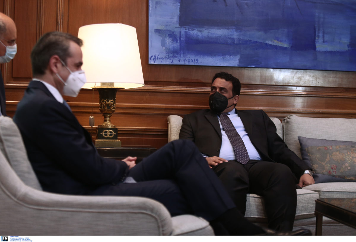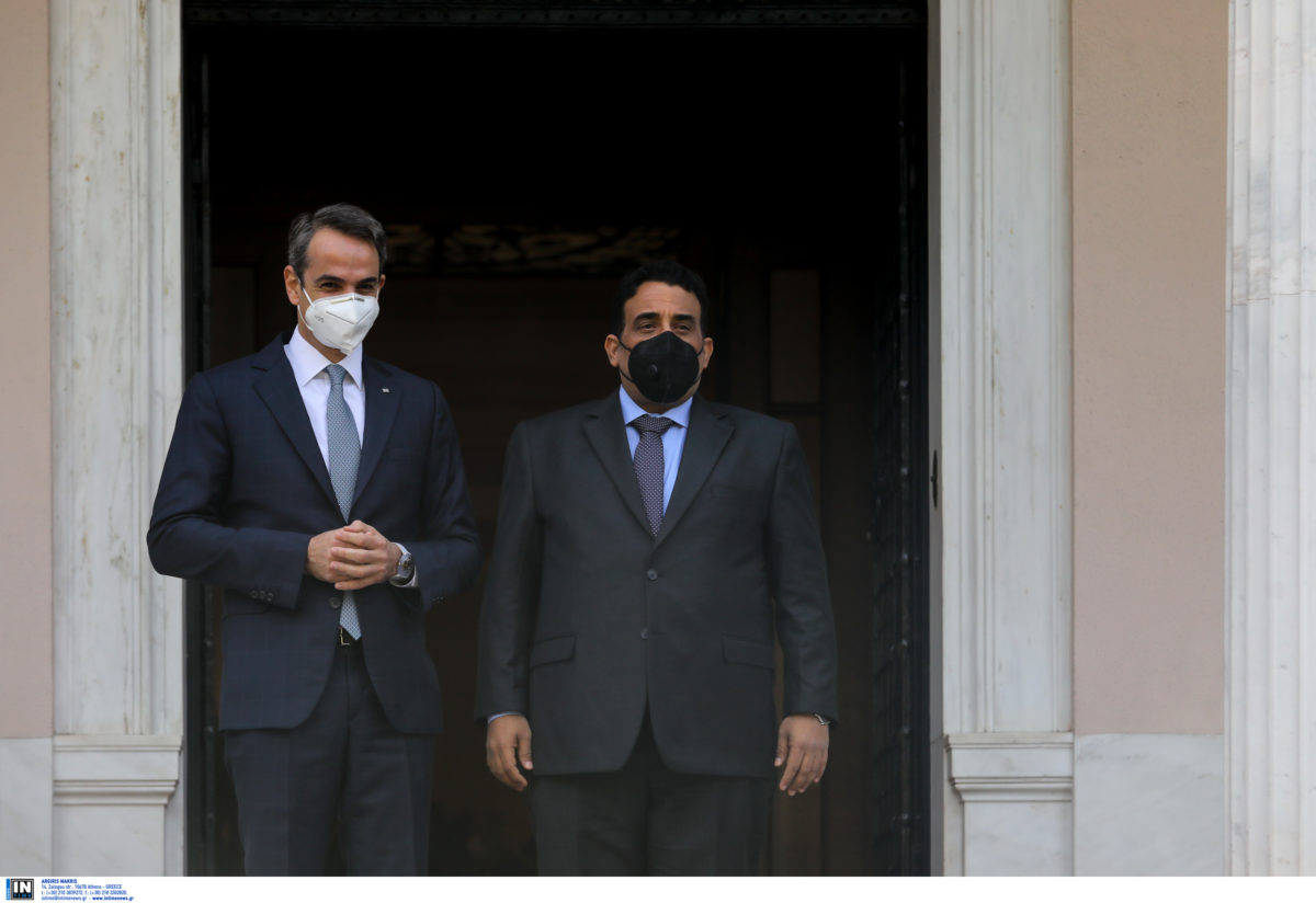 Στην άμεση επανεκκίνηση των συνομιλιών Ελλάδας και Λιβύης για την οριοθέτηση των Θαλασσίων Ζωνών υπό την ευθύνη των Υπουργών Εξωτερικών των δύο χωρών συμφώνησαν σήμερα ο Πρωθυπουργός Κυριάκος Μητσοτάκης με τον Πρόεδρο του Προεδρικού Συμβουλίου της Λιβύης, Mohamed al-Menfi με τον οποίο συναντήθηκε το πρωί στο Μέγαρο Μαξίμου.