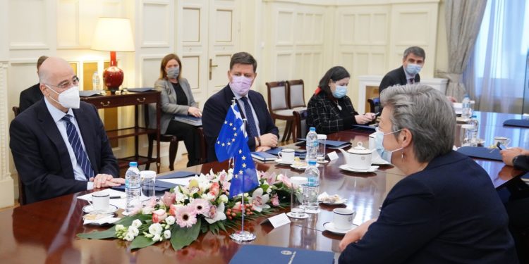 Η ανάγκη να εφαρμόσει η Τουρκία πλήρως την κοινή δήλωση Ευρωπαϊκής Ένωσης – Τουρκίας υπογραμμίστηκε στη συνάντηση του υπουργού Εξωτερικών Νίκου Δένδια με την Ευρωπαία Επίτροπο, αρμόδια για τις Εσωτερικές Υποθέσεις και το μεταναστευτικό – προσφυγικό ‘Ιλβα Γιόχανσον, σύμφωνα με διπλωματικές πηγές.