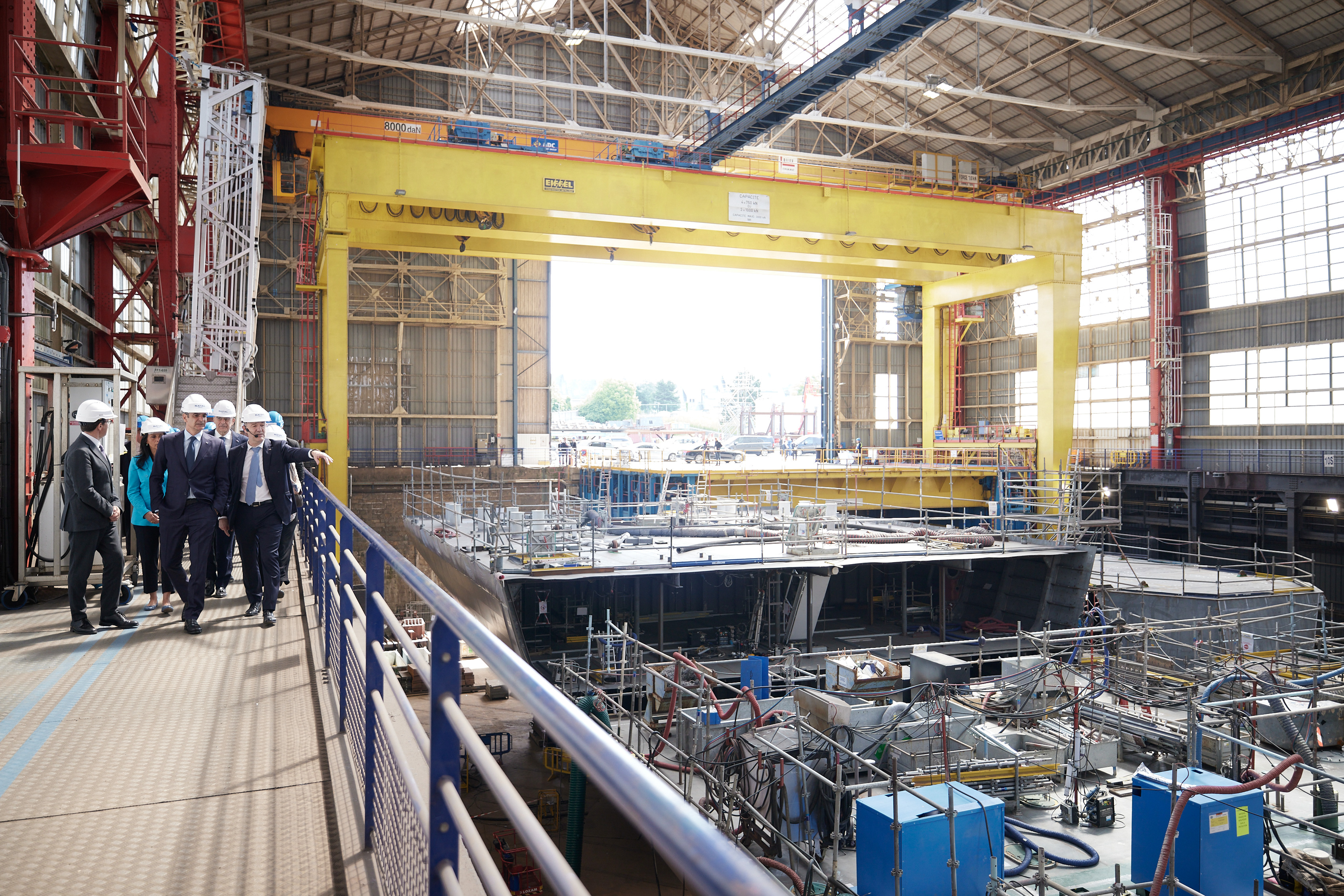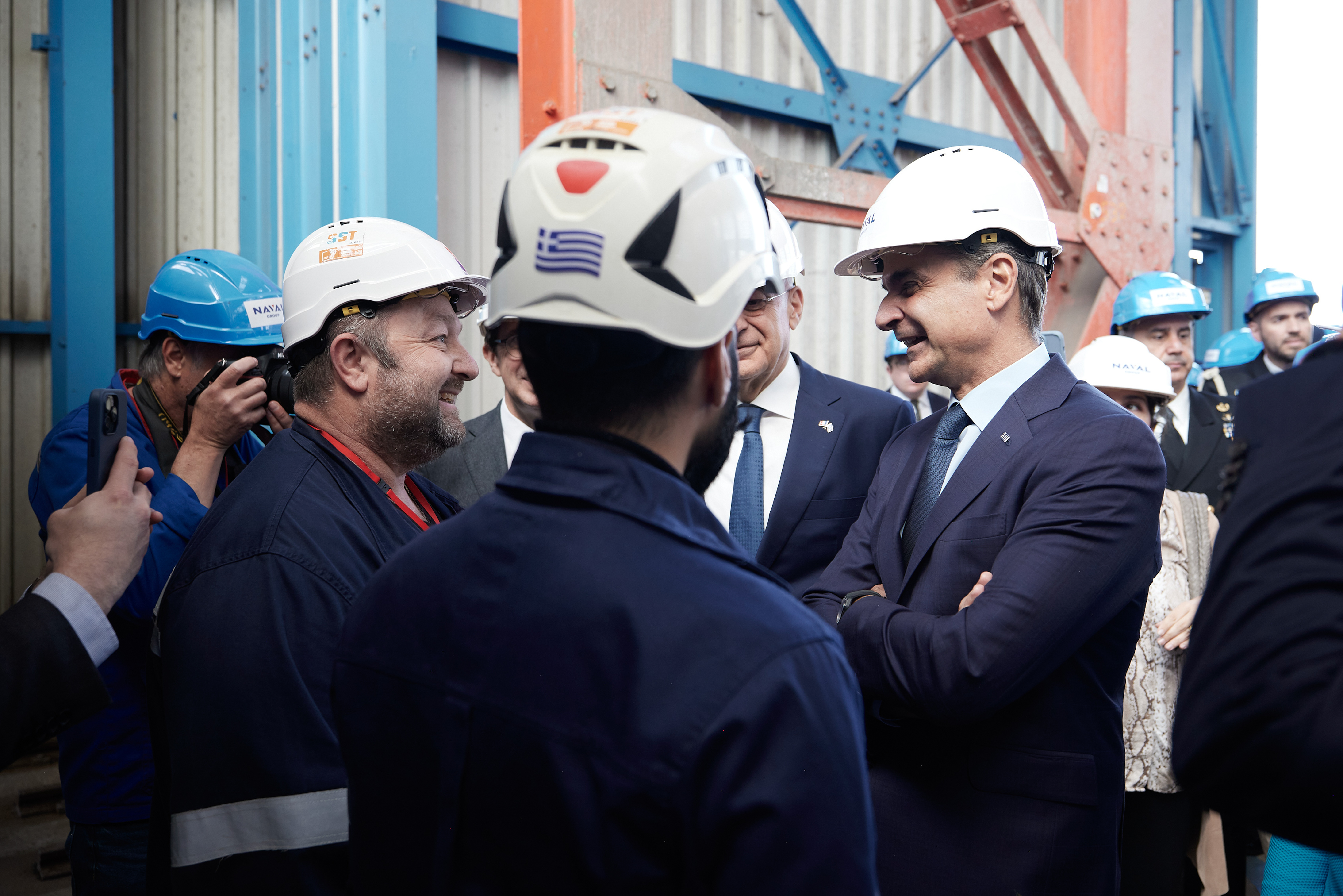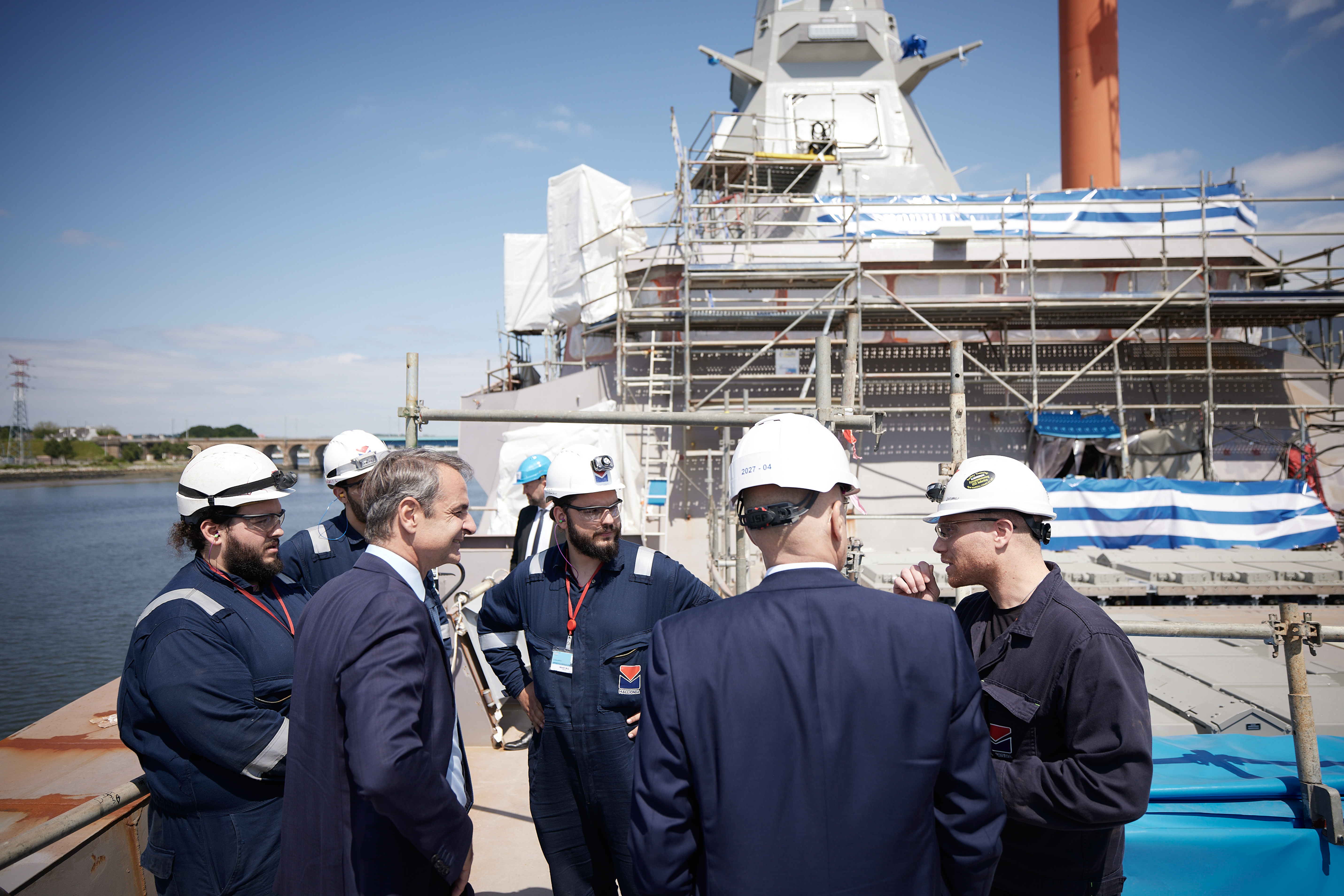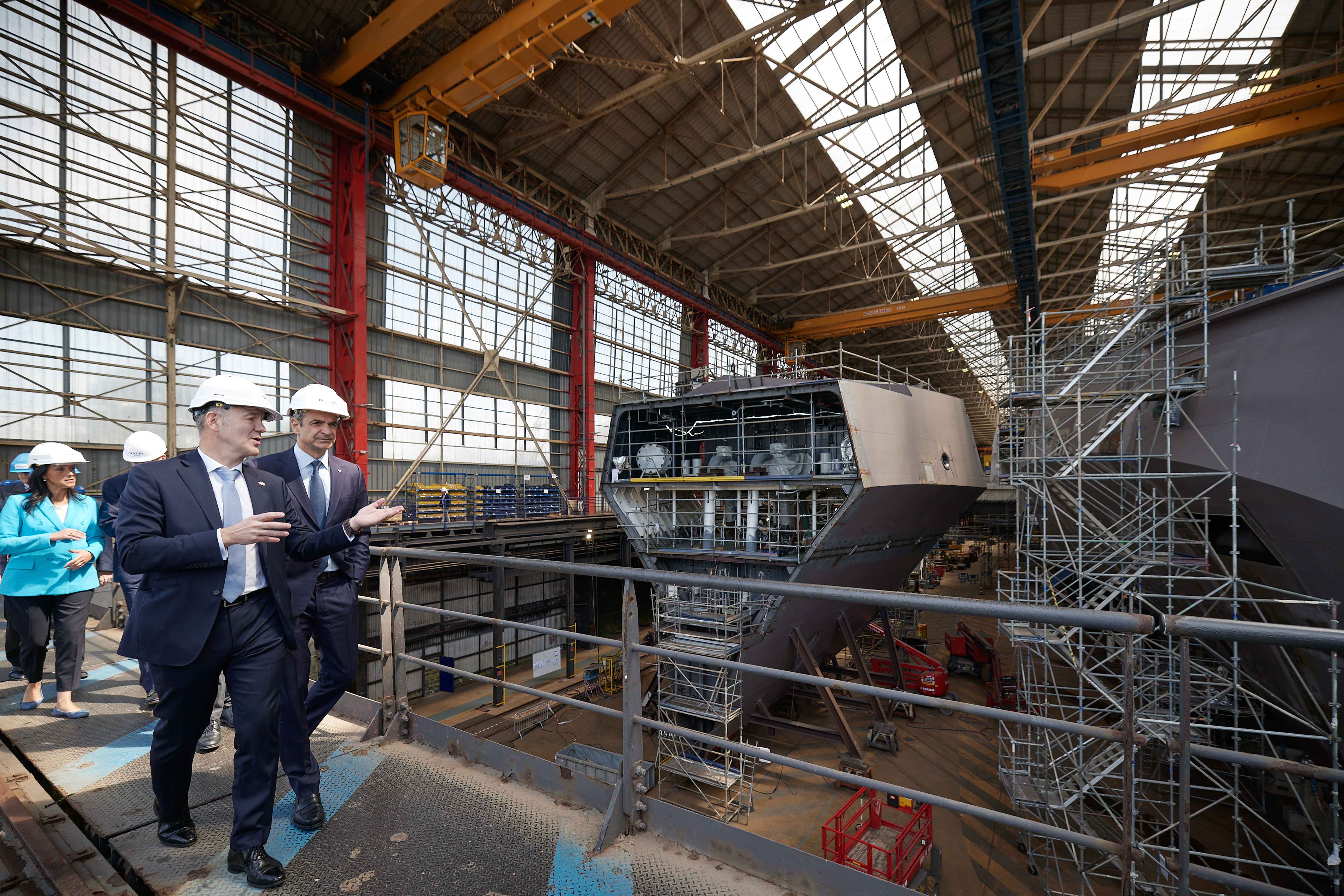Κατά τη διάρκεια της επίσκεψής του, ο Πρωθυπουργός επιβιβάστηκε στη φρεγάτα «ΚΙΜΩΝ», η οποία βρίσκεται σε προχωρημένο στάδιο ναυπήγησης, και ξεναγήθηκε στις δεξαμενές ναυπήγησης των φρεγατών «ΝΕΑΡΧΟΣ» και «ΦΟΡΜΙΩΝ», οι οποίες αναμένεται να παραδοθούν περί τα τέλη του 2025 και το 2026 αντίστοιχα.
