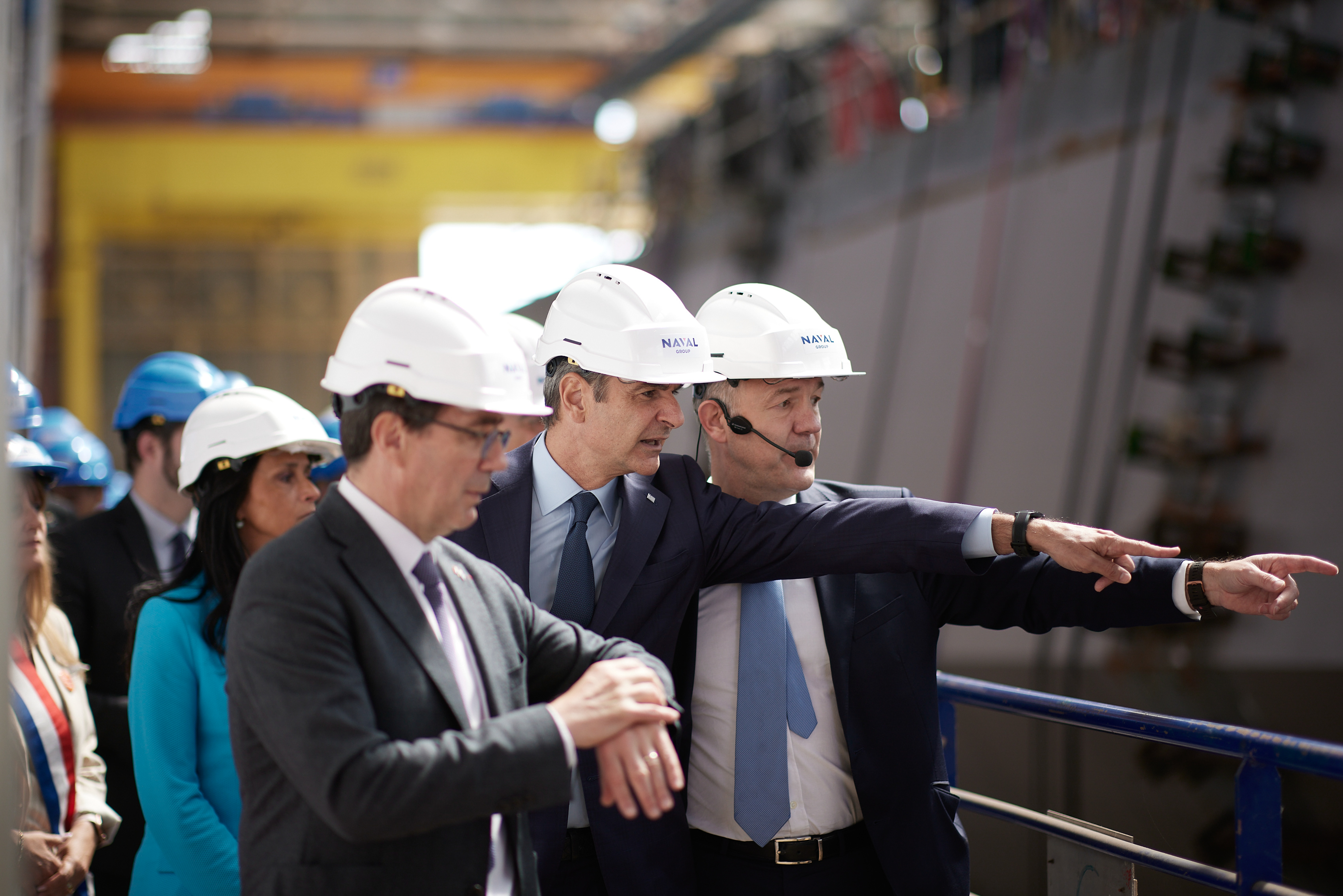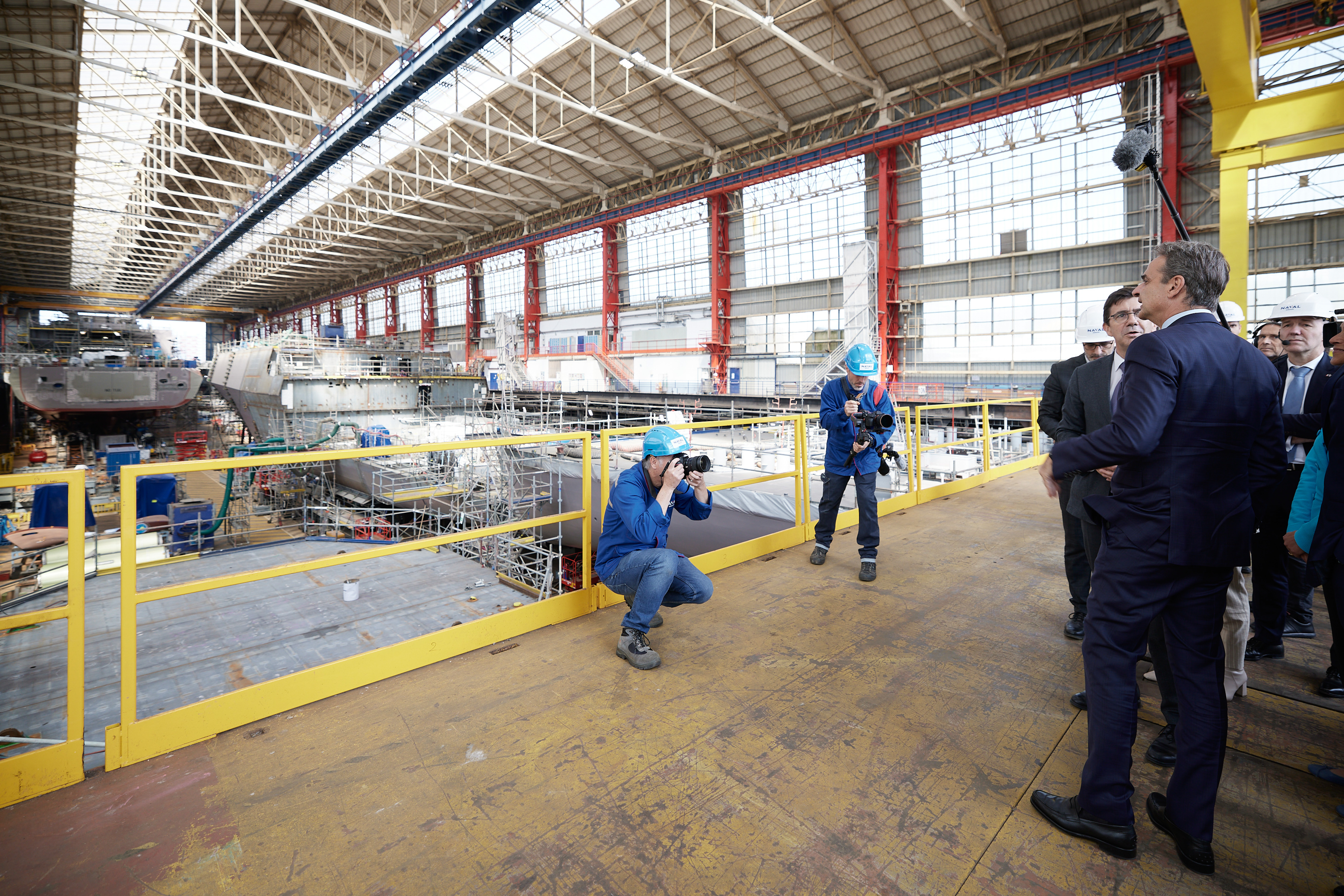 Ο Πρωθυπουργός Κυριάκος Μητσοτάκης επισκέφθηκε το πρωί τα ναυπηγεία της Naval Group, στο Λοριάν της Γαλλίας, όπου ναυπηγούνται οι τρεις φρεγάτες τελευταίας τεχνολογίας FDI «Belharra» που θα παραδοθούν στο ελληνικό Πολεμικό Ναυτικό.