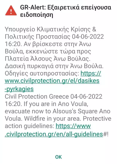 Οι κάτοικοι έλαβαν μήνυμα από το 112.