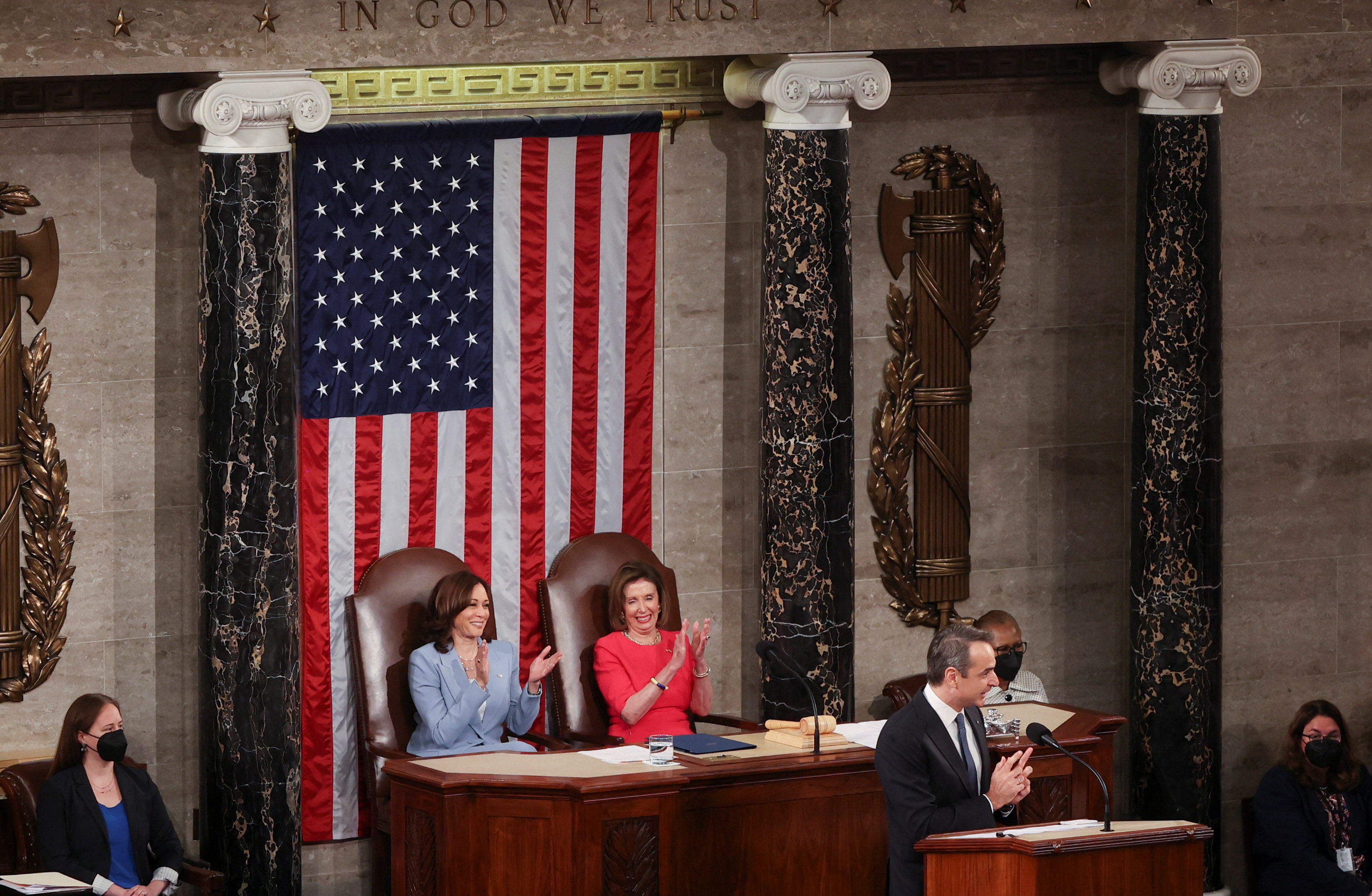 Ο Κυριάκος Μητσοτάκης, ο οποίος βρίσκεται στην Ουάσινγκτον για επίσημη επίσκεψη, μιλά στην κοινή συνεδρίαση της Βουλής των Αντιπροσώπων και του Κογκρέσου και είναι από τους λίγους πολιτικούς ανά τον κόσμο στους οποίους έχει γίνει παρόμοια τιμή.