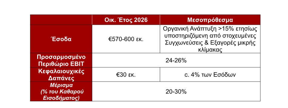 – Μικρές συμπληρωματικές Συγχωνεύσεις & Εξαγορές (bolt‑on M&A) προβλέπονται για τη χρήση 2026, προς ενίσχυση τεχνολογικών δυνατοτήτων και διεύρυνση του χαρτοφυλακίου προϊόντων, χωρίς έκδοση νέων μετοχών.