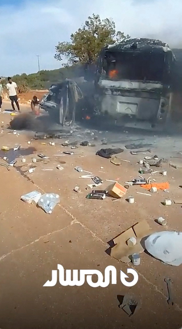 Οι αποκαρδιωτικές εικόνες από τον τόπο του δυστυχήματος δείχνουν το λεωφορείο που μετέφερε την ελληνική αποστολή να είναι στην άκρη του δρόμου και να έχει καεί ολοσχερώς.