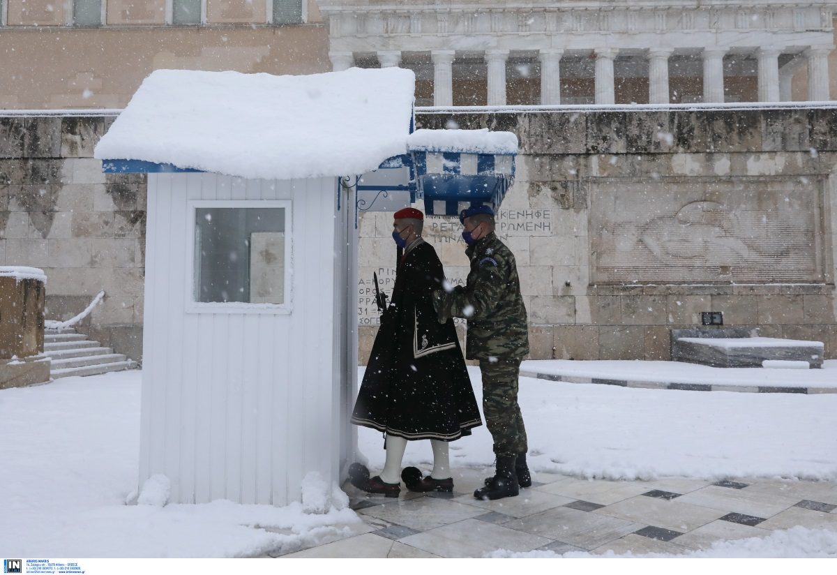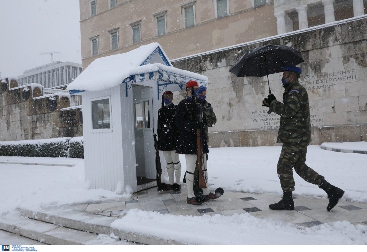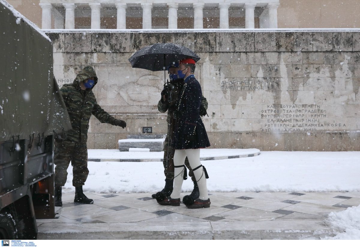 Με βροχές, με χιόνια, με ανέμους, με καύσωνα, οι Εύζωνες είναι εκεί. Ακοίμητοι φρουροί στο Μνημείο του Άγνωστου Στρατιώτη.
