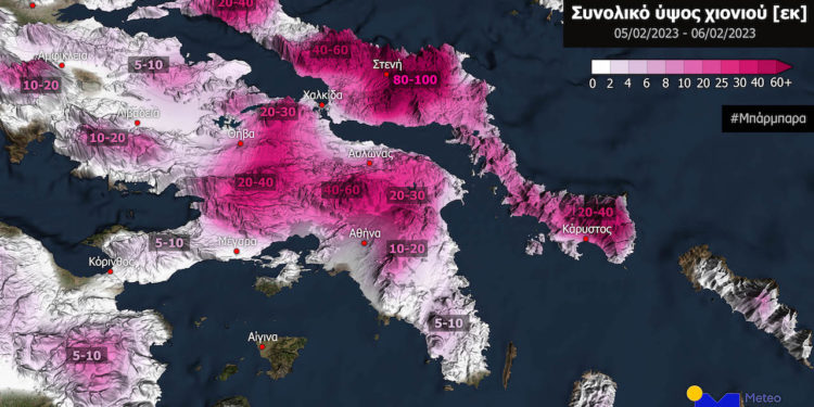 Εντός του λεκανοπεδίου Αττικής, οι σημαντικότερες χιονοστρώσεις από την κακοκαιρία «Μπάρμπαρα» αναμένονται κυρίως στα βορειότερα τμήματα, όπου είναι πιθανό να σημειωθούν έως και 20 – 30 εκατοστά χιονιού εκτιμά το meteo, το μετεωρολογικό τμήμα του Αστεροσκοπείου Αθηνών.