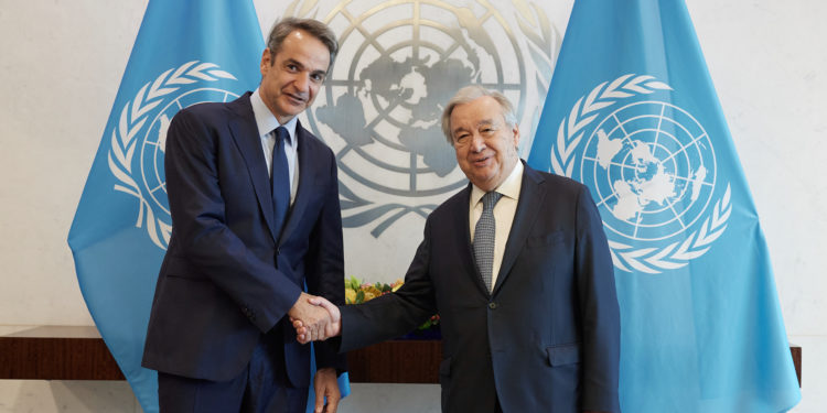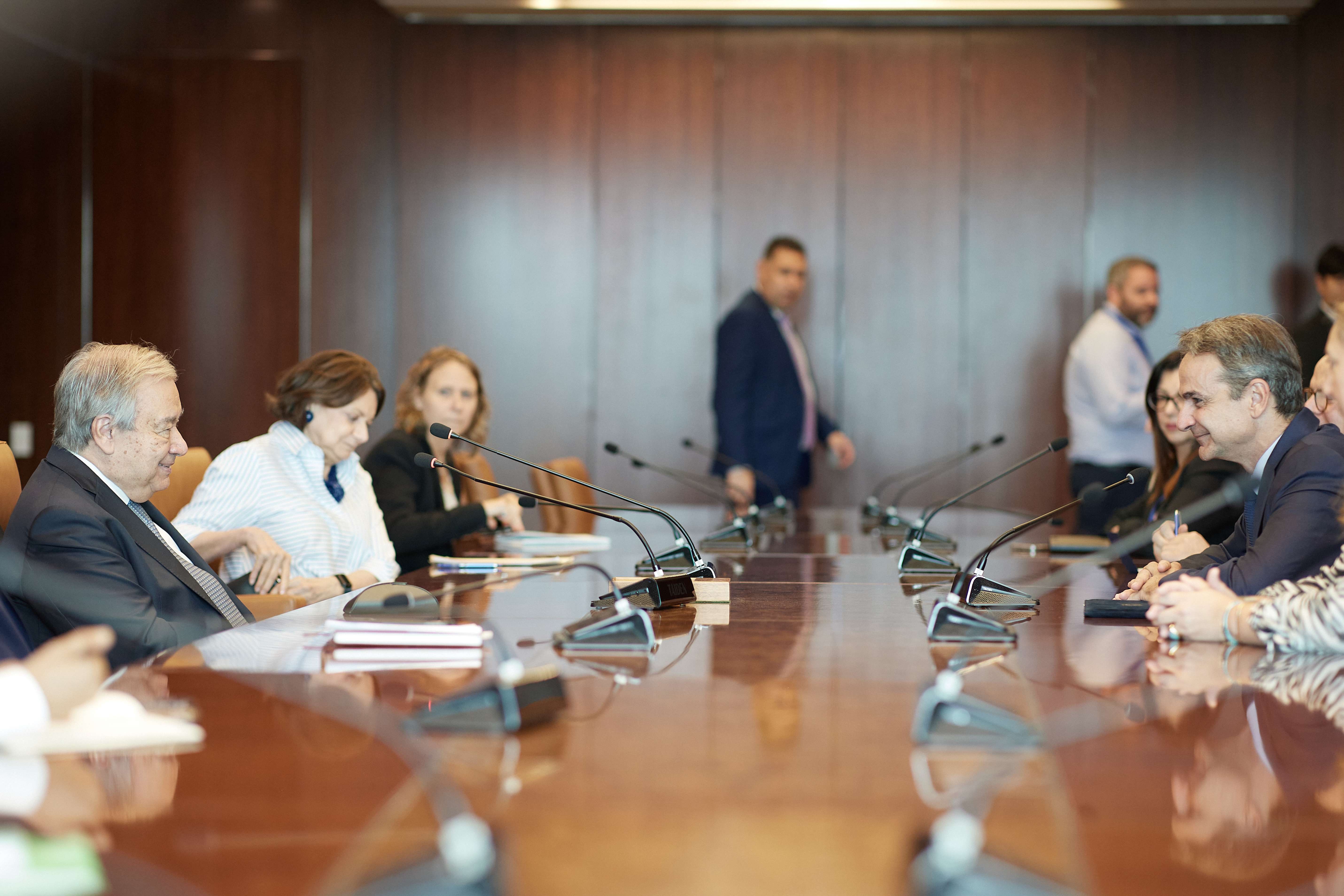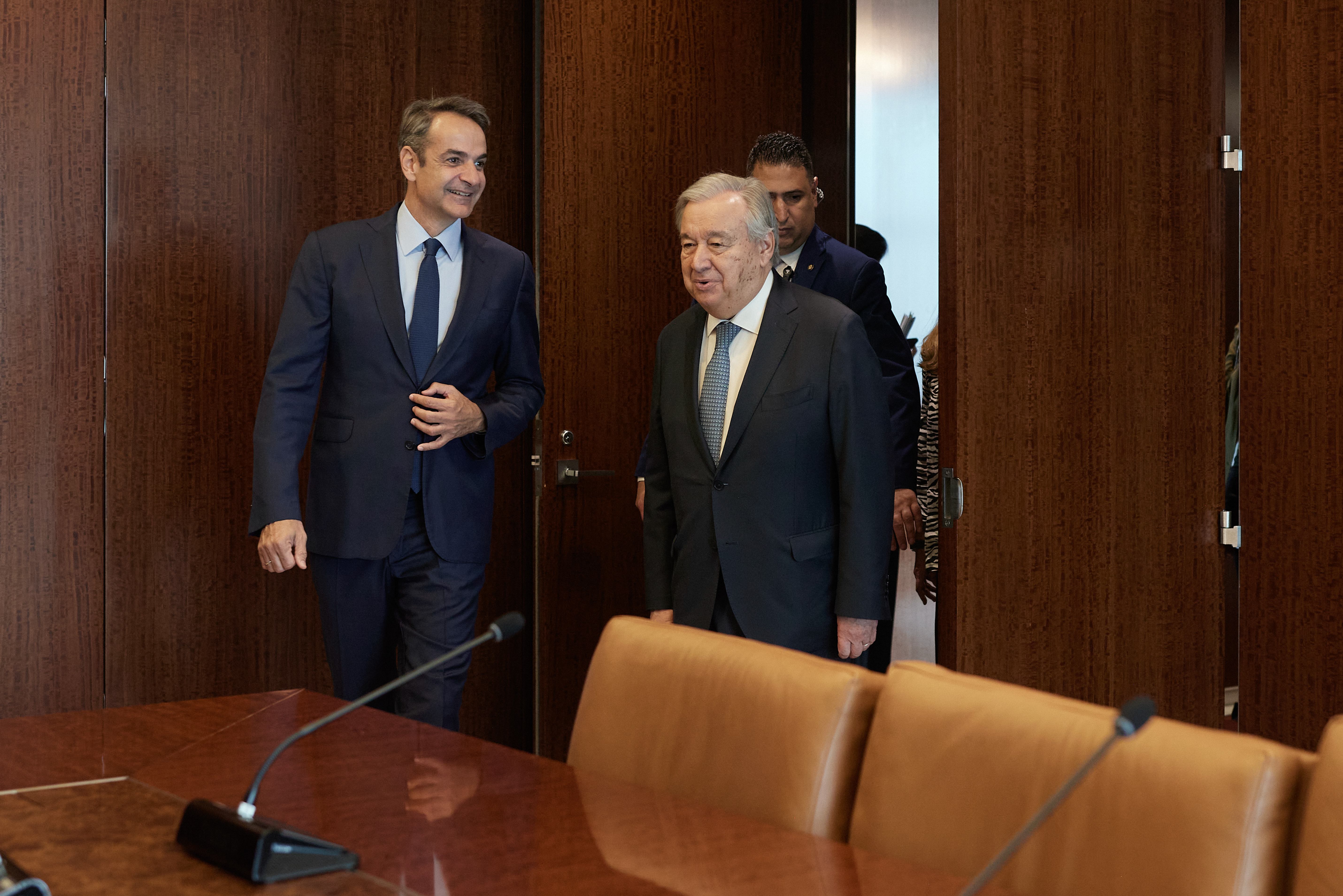 Ο Πρωθυπουργός Κυριάκος Μητσοτάκης συνάντησε σήμερα, Παρασκευή 12 Ιουλίου 2024, τον Γενικό Γραμματέα του ΟΗΕ Αντόνιο Γκουτέρες στη Νέα Υόρκη.