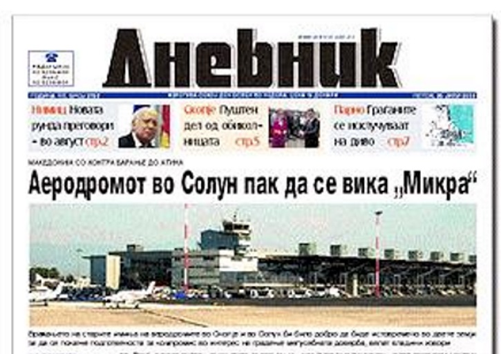 Συγκεκριμένα η εφημερίδα «Ντνέβνικ» με πρωτοσέλιδο τίτλο προανήγγειλε στις 25 Ιουλίου του 2008 αλλαγή του ονόματος του αεροδρομίου Θεσσαλονίκης από «Μακεδονία» σε «Μίκρα».