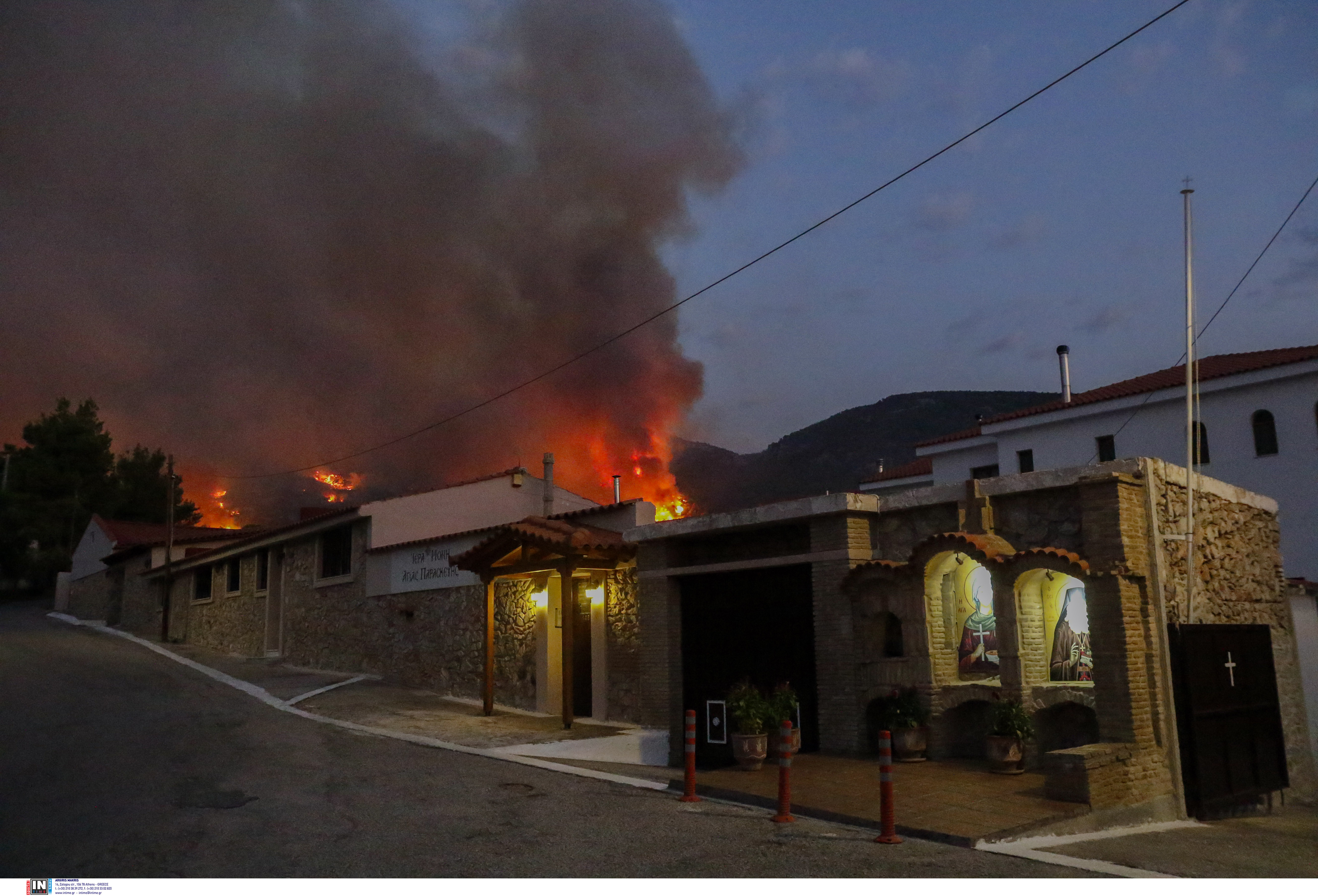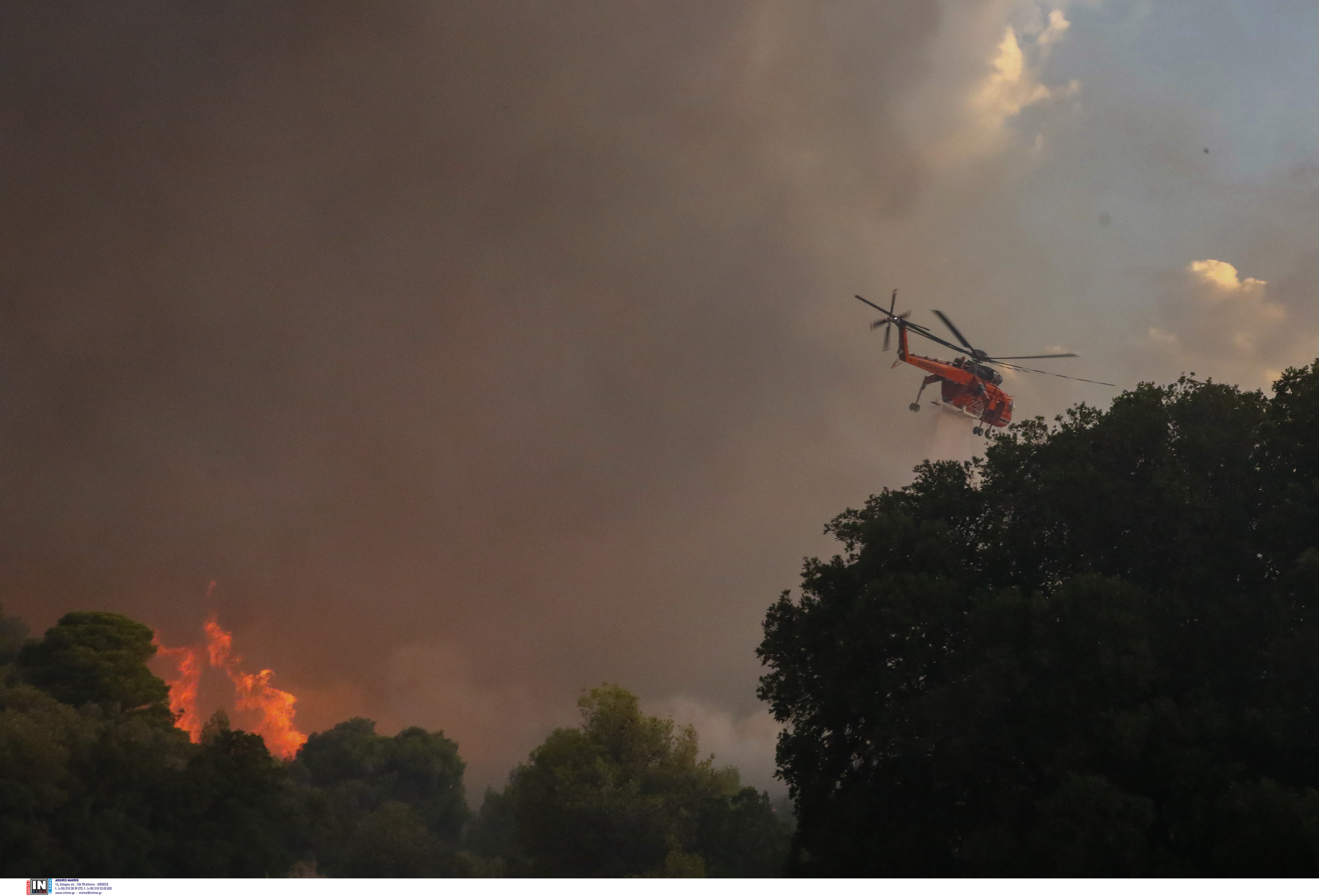 Από νωρίς το πρωί της Τετάρτης τα εναέρια μέσα πραγματοποιούν ρίψεις νερού, αλλά οι άνεμοι δυσκολεύουν το έργο τους.