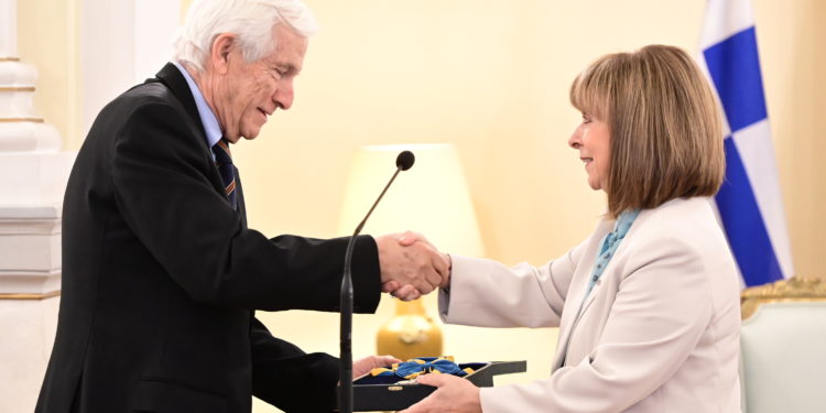 Η Πρόεδρος της Δημοκρατίας Κατερίνα Σακελλαροπούλου, σε ειδική τελετή στο Προεδρικό Μέγαρο, απένειμε το παράσημο του Μεγαλόσταυρου του Τάγματος της Τιμής στον εφοπλιστή Παναγιώτη Λασκαρίδη.