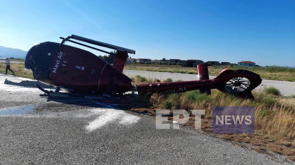 Κατά τις πληροφορίες της ΕΡΤ, στο ελικόπτερο επέβαιναν 5 άτομα που τραυματίστηκαν ελαφρά. Το ελικόπτερο φέρεται να χτύπησε στον διάδρομο κατά την προσγείωσή του με αποτέλεσμα να ανατραπεί.