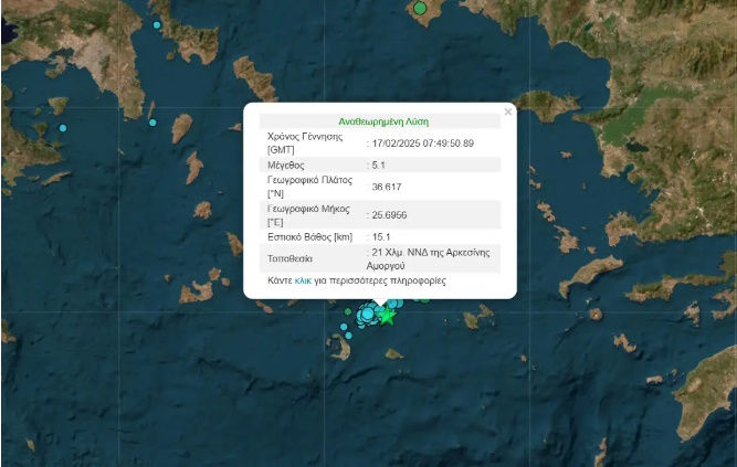 Ο ένας σεισμός 4,2 Ρίχτερ έγινε 3 λεπτά πριν τον ισχυρό σεισμό ανοιχτά της Αμοργού.
