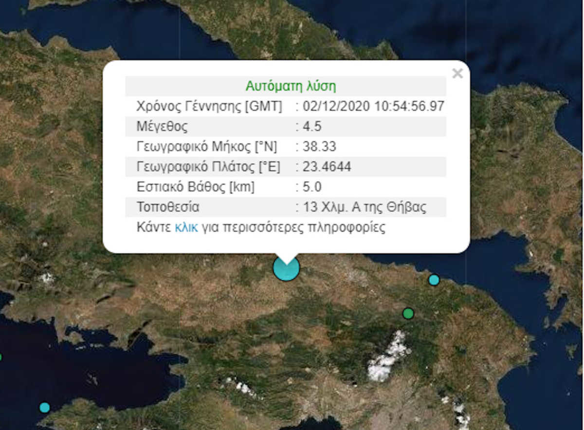 Σεισμός 4,5 ρίχτερ στην Θήβα – Αισθητός και στην Αττική