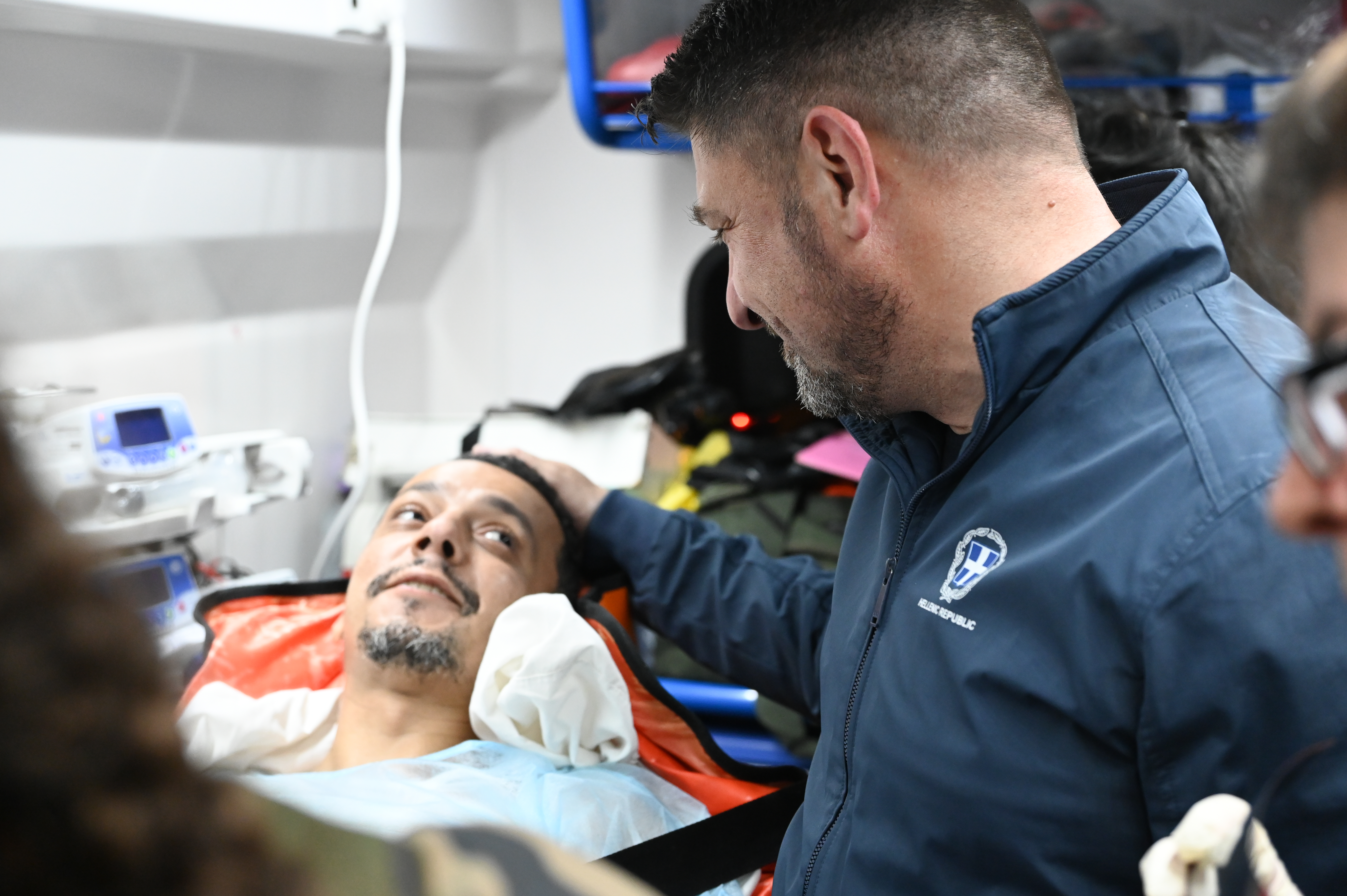 Η κατάστασή του κρίνεται σοβαρή αλλά σταθερή, ενώ πρέπει να χειρουργηθεί πάλι εντός 48 ωρών. Στο αεροσκάφος θα επιβιβαστεί και ο έφηβος γιος του.