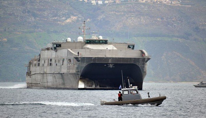 Πρόκειται για το υψηλής ταχύτητας καταμαράν USNS Trenton το οποίο βρίσκεται σε αποστολή στην κεντρική και ανατολική Μεσόγειο.