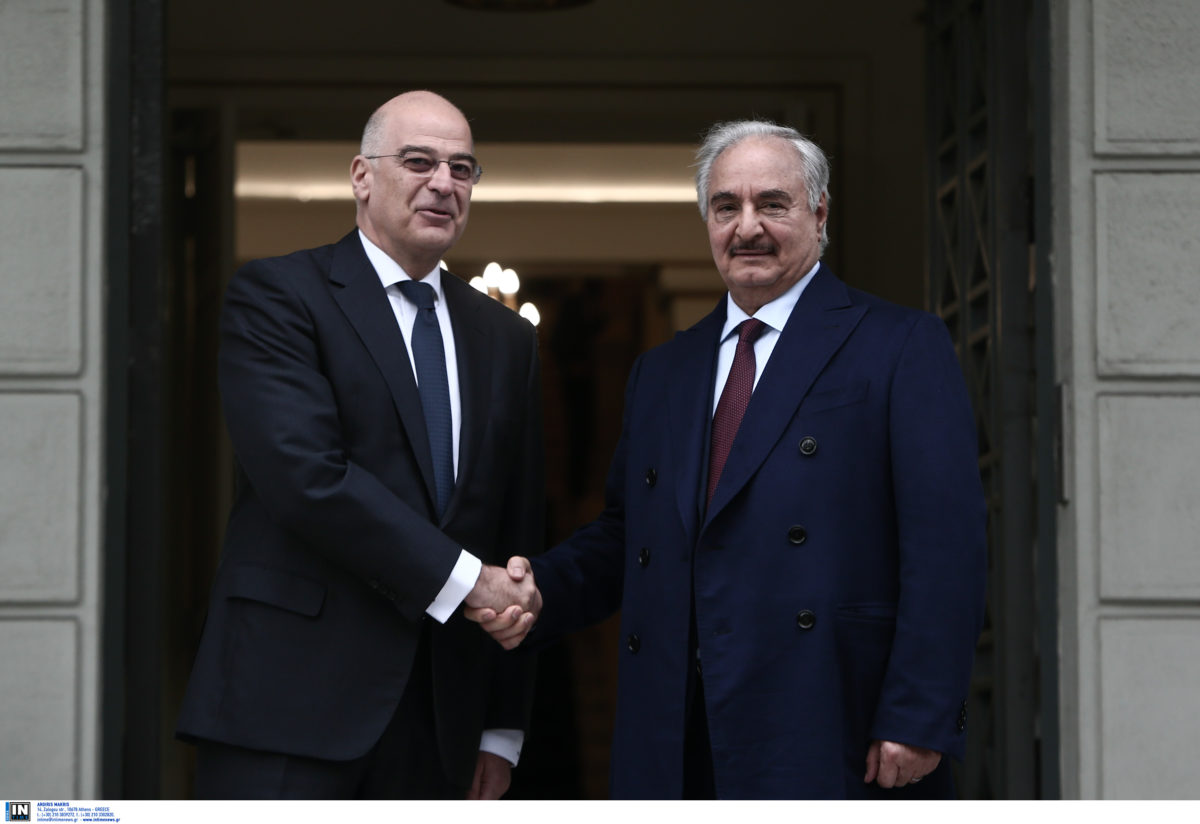Ξεκίνησε η συνάντηση του υπουργού Εξωτερικών Νίκου Δένδια με τον επικεφαλής του Λιβυκού Εθνικού Στρατού (LNA), στρατάρχη Χαλίφα Χάφταρ (Khalifa Haftar) στο υπουργείο Εξωτερικών.