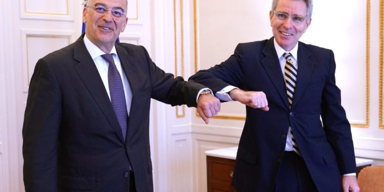 Συνάντηση με τον Αμερικανό πρέσβη Τζέφρι Πάιατ πραγματοποίησε νωρίτερα σήμερα ο υπουργός Εξωτερικών Νίκος Δένδιας.