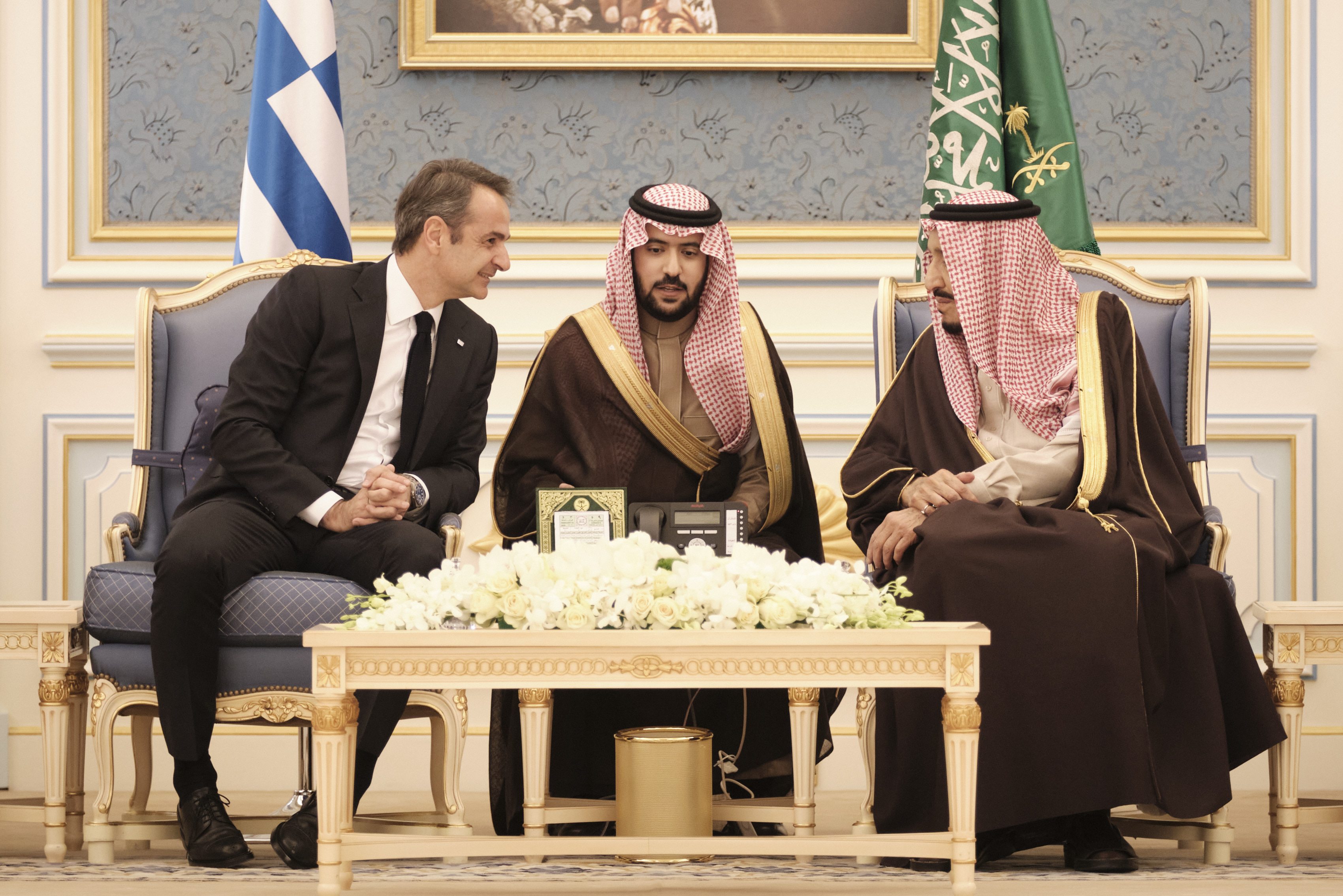 Συνάντηση και γεύμα εργασίας με τον Βασιλιά της Σαουδικής Αραβίας Salman bin Abdulaziz Al Saud είχε ο Πρωθυπουργός Κυριάκος Μητσοτάκης.