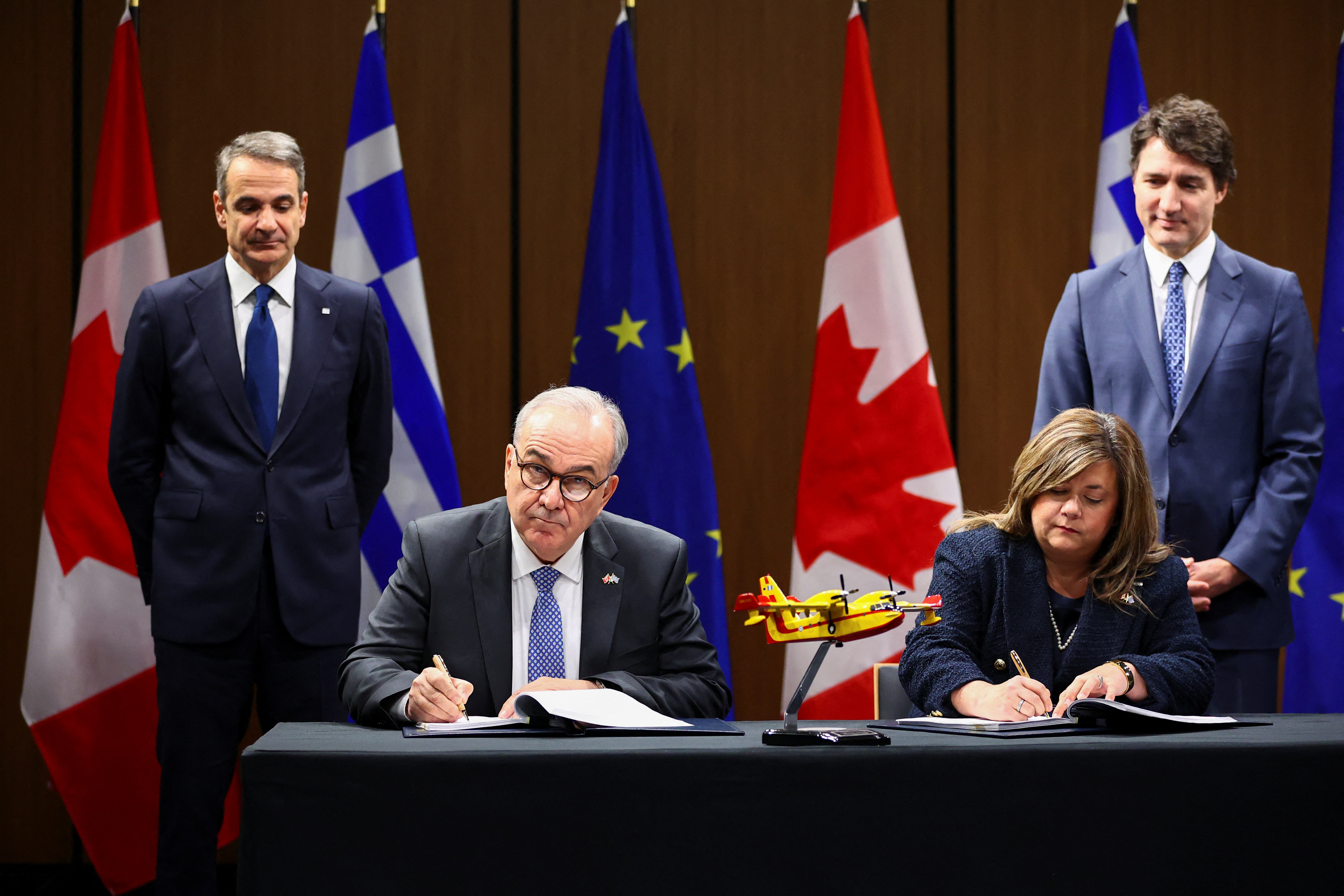 Αλλά η φιλία μεταξύ Καναδά και Ελλάδας είναι πολύ βαθιά. Μία από τις πλέον υπερήφανες και επιτυχημένες κοινότητες της ελληνικής διασποράς είναι εδώ, στον Καναδά. Έχουμε βαθείς και αναπτυσσόμενους δεσμούς. Οι προκλήσεις στον κόσμο απαιτούν φίλους με κοινές αρχές και προοπτικές που θα ενώσουν τις δυνάμεις τους και θα συνεργαστούν, είτε πρόκειται για τη Μέση Ανατολή είτε πρόκειται για μία από τις πραγματικές προκλήσεις στην Ανατολική Ευρώπη, στην Ουκρανία και αλλού, είτε πρόκειται για το πώς θα συνεχίσουμε να ενισχύουμε τις επενδύσεις, ακόμη και μέχρι τη μάχη ενάντια στην κλιματική αλλαγή και το πώς θα αντιμετωπίσουμε τις δασικές πυρκαγιές με καλή συνεργασία.