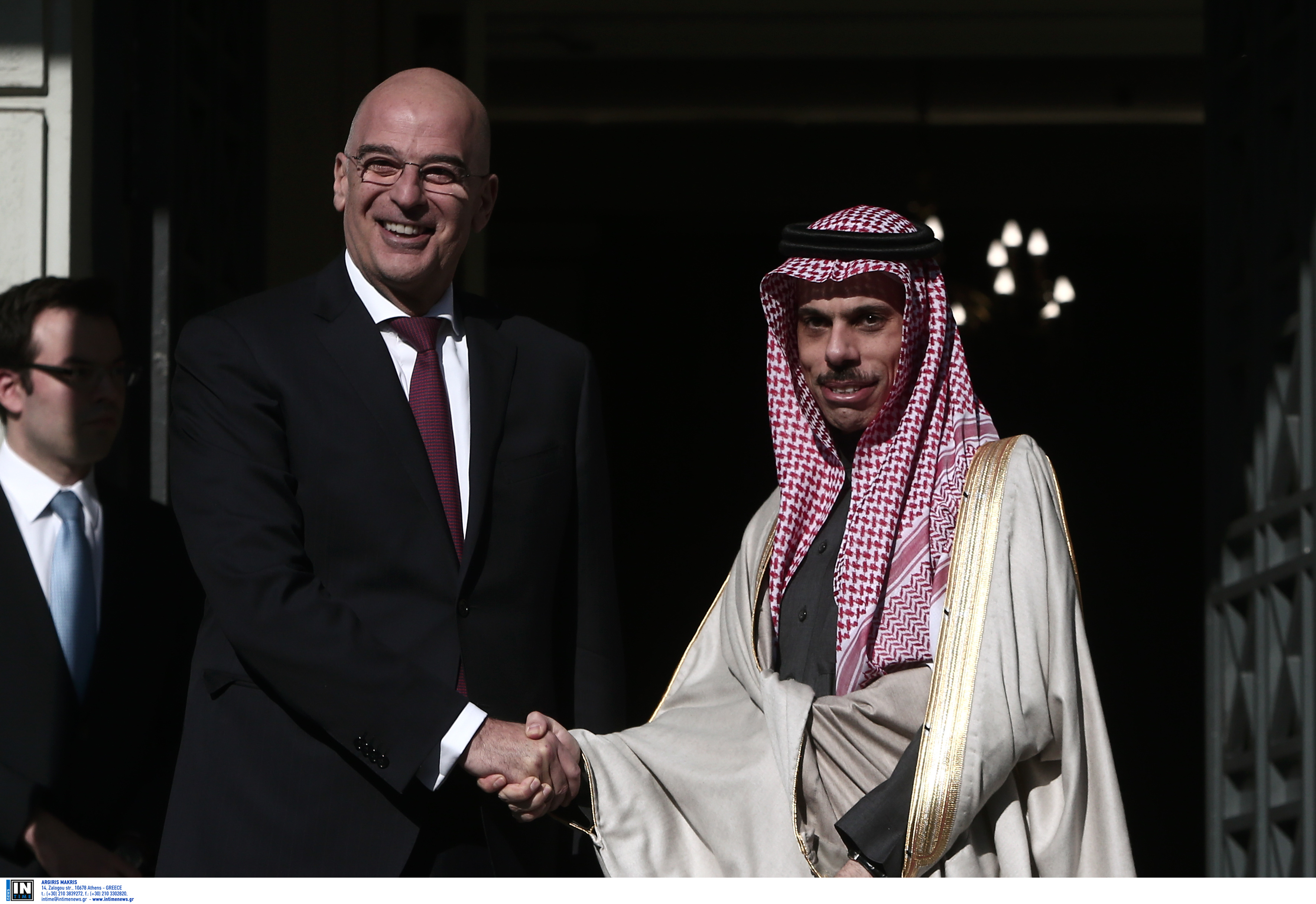 H δεύτερη συνάντησή τους μέσα σε ένα μήνα έχουν στην Αθήνα αυτή την ώρα οι υπουργοί Εξωτερικών της Ελλάδας Νίκος Δένδιας και της Σαουδικής Αραβίας, πρίγκιπας Φάισαλ μπιν Φαρχάν αλ Σαούντ. Η επίσκεψη του Σαουδάραβα υπουργού Εξωτερικών εντάσσεται στο πλαίσιο της διαρκούς επικοινωνίας μεταξύ των δύο χωρών με επίκεντρο την ανταλλαγή απόψεων επί θεμάτων που άπτονται της ασφάλειας και της σταθερότητας στην περιοχή και τον μεταξύ τους συντονισμό για θέματα αμοιβαίου ενδιαφέροντος.