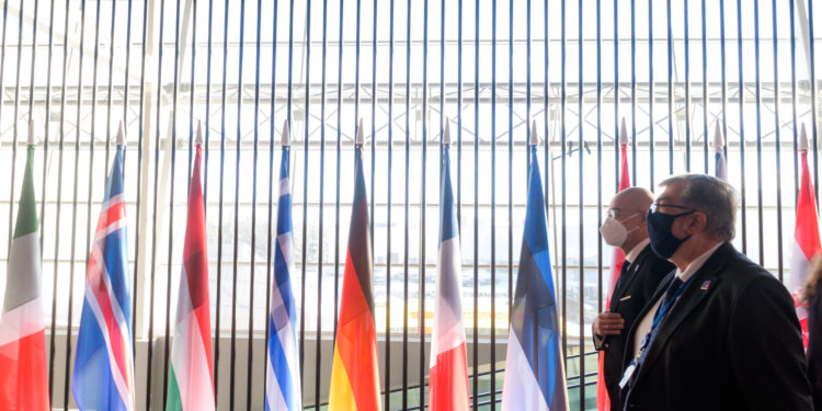 «Θα έχω επίσης την ευκαιρία να επιστήσω την προσοχή και του παριστάμενου Ουκρανού υπουργού Εξωτερικών, του κ. Κουλέμπα, στα ζητήματα ασφάλειας της ελληνικής μειονότητας στη γραμμή επαφής γύρω από τη Μαριούπολη» επισήμανε ο κ. Δένδιας.