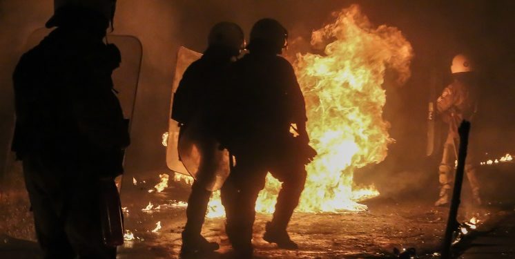 Ελαφρά τραυματίστηκε αστυνομικός μετά την επίθεση νεαρών κουκουλοφόρων με βόμβες μολότοφ και διάφορα αντικείμενα, που σημειώθηκε λίγο πριν από τα μεσάνυχτα στη συμβολή των οδών Θεμιστοκλέους και Τζαβέλλα στην περιοχή των Εξαρχείων.