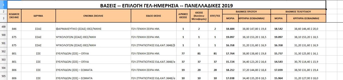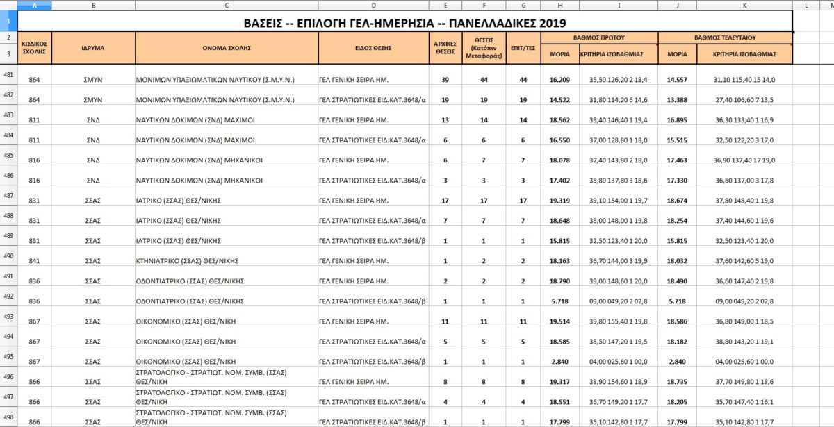Δείτε τις βάσεις στις Στρατιωτικές Σχολές για τους υποψήφιους των Ημερήσιων Γενικών Λυκείων: