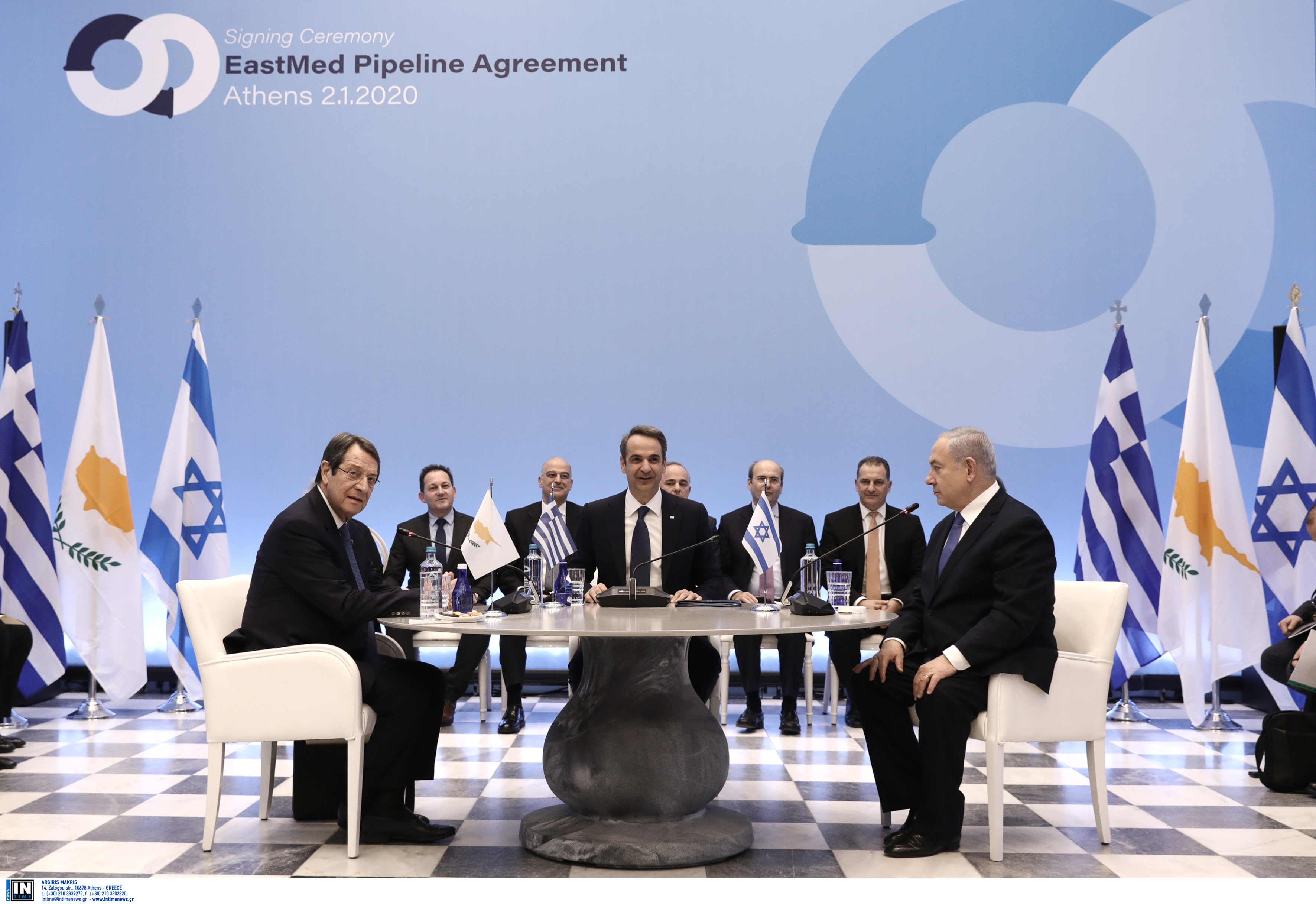 Επιστέγασμα μιας νέας γεωπολιτικής εταιρικής σχέσης μεταξύ Ελλάδος Κύπρου και Ισραήλ, χαρακτήρισε τη Διακρατική Συμφωνία για τον ενεργειακό αγωγό EastMed, ο πρωθυπουργός Κυριάκος Μητσοτάκης.